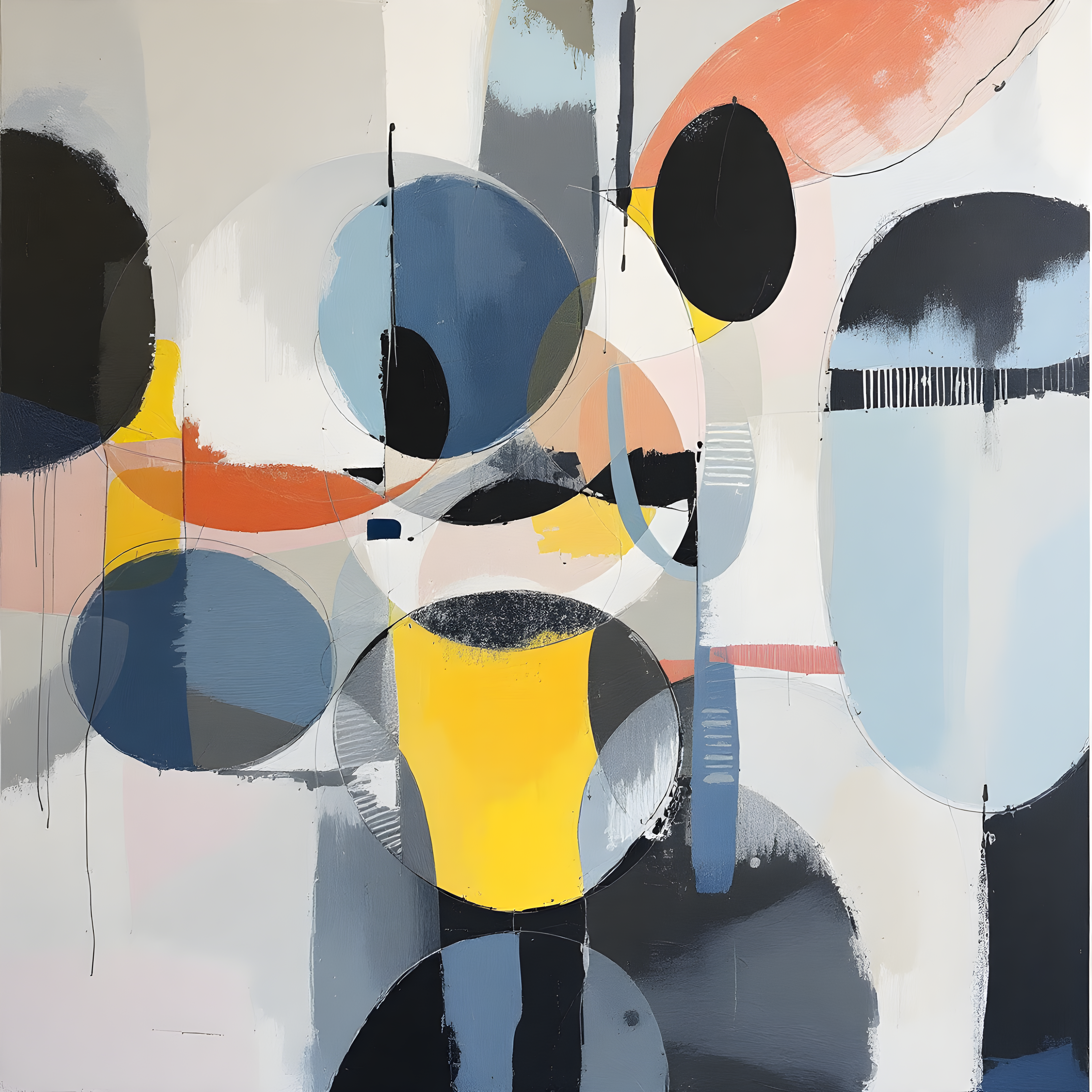 Over the remote Arctic Ocean northwest of the Mackenzie River delta in Canada's Beaufort Sea, an extreme low-pressure system churns through the polar darkness. The steep pressure gradient of 72.38 Pa/cell creates dense archaeological layers of memory and mark-making, while the extraordinary temperature anomaly of 34.8K above normal drives chaotic gestures that break violently through contemplative underpaintings. Complete humidity saturates the composition with translucent palimpsest effects, making decades of reworked paint visible beneath the surface, while the absence of precipitation leaves the marks dry and scrubbed rather than flowing.