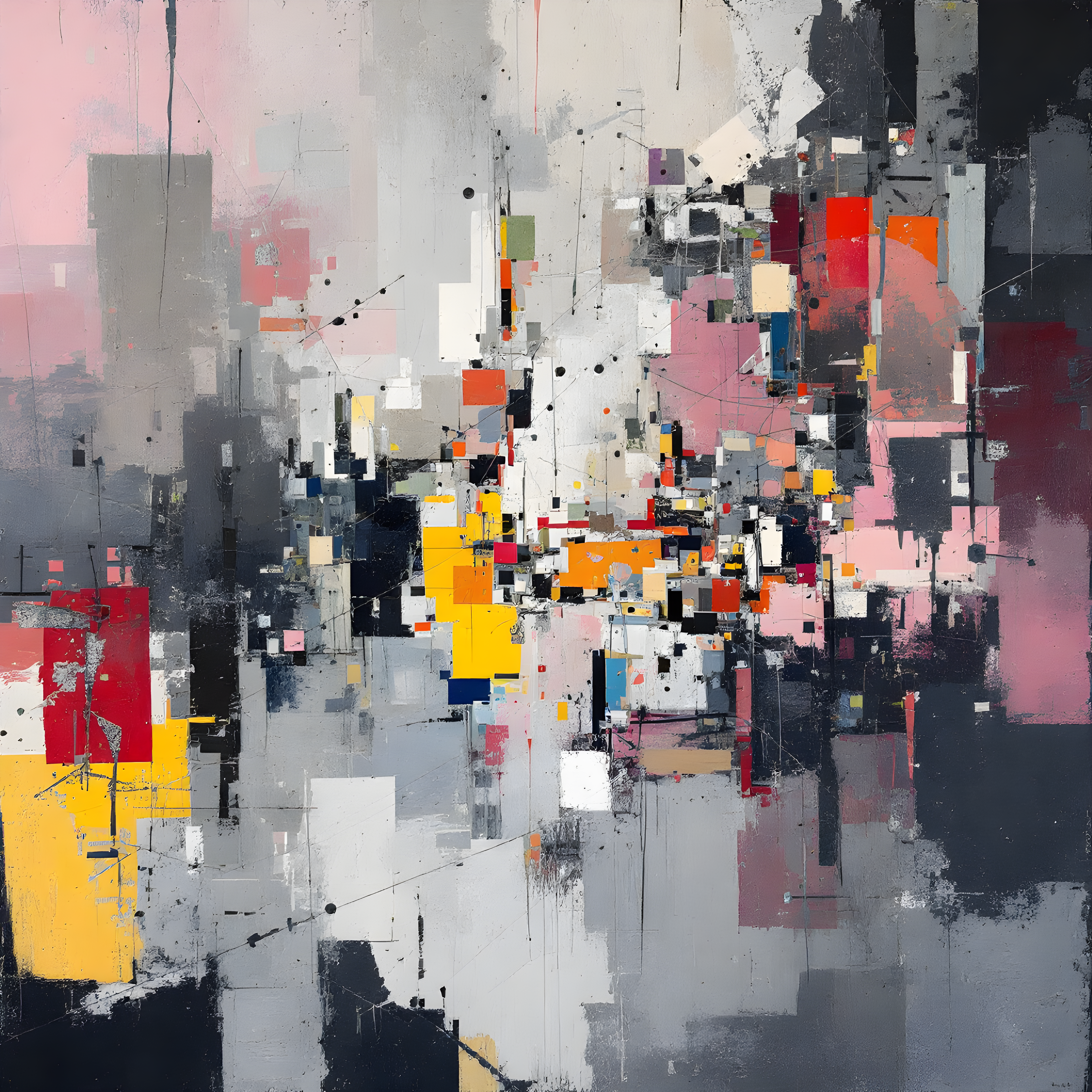 Over the Arctic Ocean northeast of the Ural Mountains at 70°N 60°E, extreme atmospheric conditions create a palimpsest of weathered marks and scraped-back layers. The steep pressure gradient (13.72 Pa/cell) demands dense archaeological stratification with multiple visible layers, while the dramatic temperature anomaly of 22.7K above normal drives chaotic gestural marks breaking through more structured underlying compositions. The high humidity (96%) renders previous layers translucent and ghostly, allowing years of painted history to show through, while light precipitation adds subtle drip marks suggesting the passage of time across this reworked canvas.