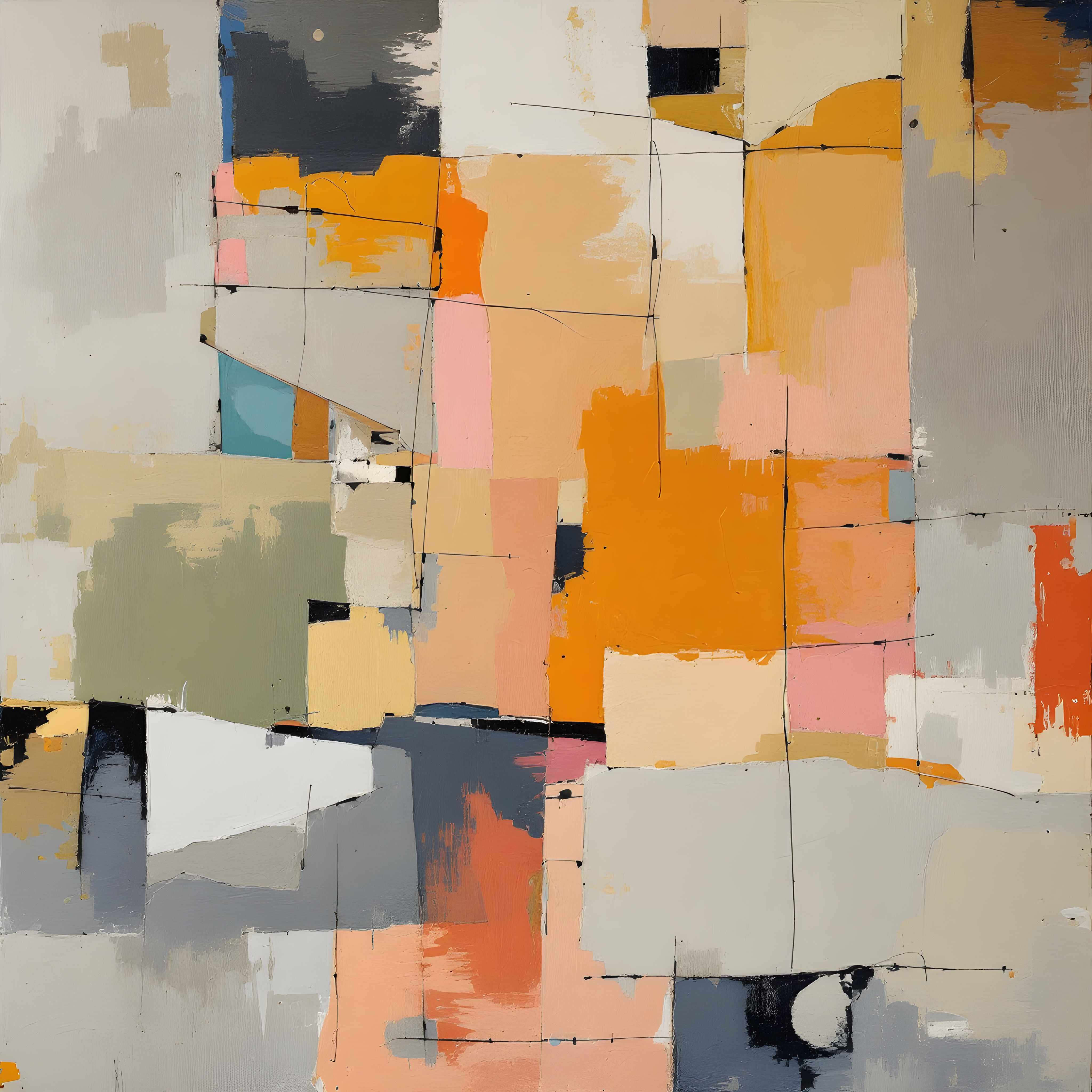 Over the Altiplano plateau of Bolivia, where thin air creates extreme pressure gradients, the atmospheric data reveals a landscape of cognitive archaeology. The steep pressure gradient (337 Pa/cell) demands dense layering—years of paint built up and scraped back to reveal geological time. The significant temperature anomaly (8.3K above zonal mean) drives chaotic marks breaking through structured fields, while high humidity (88%) ensures that earlier layers ghost through like half-remembered thoughts, creating the palimpsest quality central to Tannahill's practice.