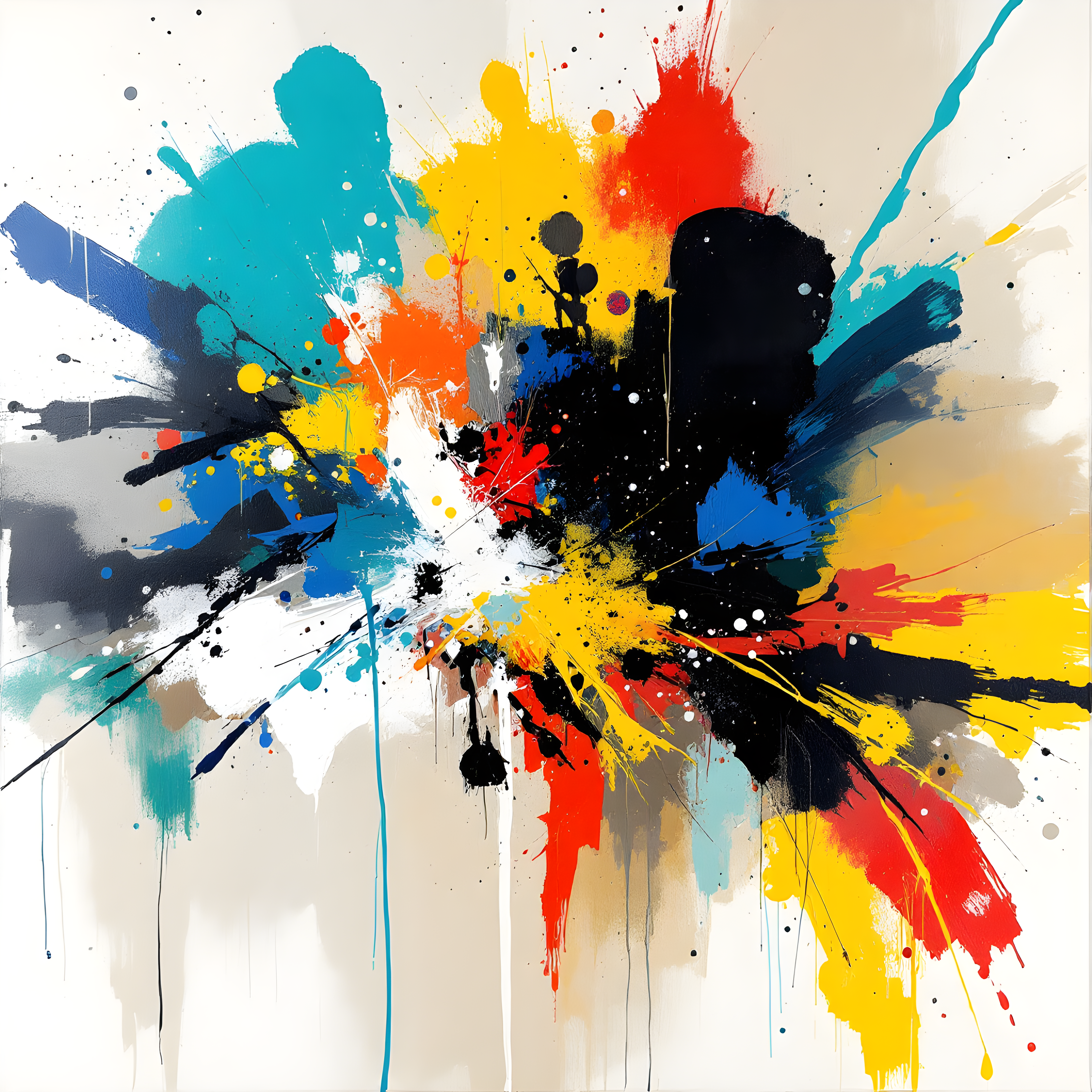 Over the Greenland Sea in the high Arctic, this location experiences intense atmospheric dynamics with strong northerly winds, high humidity, and significant temperature anomalies. The moderate pressure gradient and powerful 12.8 m/s winds from the near-north drive explosive color dispersal across the composition, while the extreme cold temperatures shift the palette toward muted earth tones punctuated by icy blues and whites. The very high humidity creates dense, saturated color pools that accumulate heavily at the canvas edges, leaving luminous breathing space in the center where the harsh Arctic conditions create natural negative space.