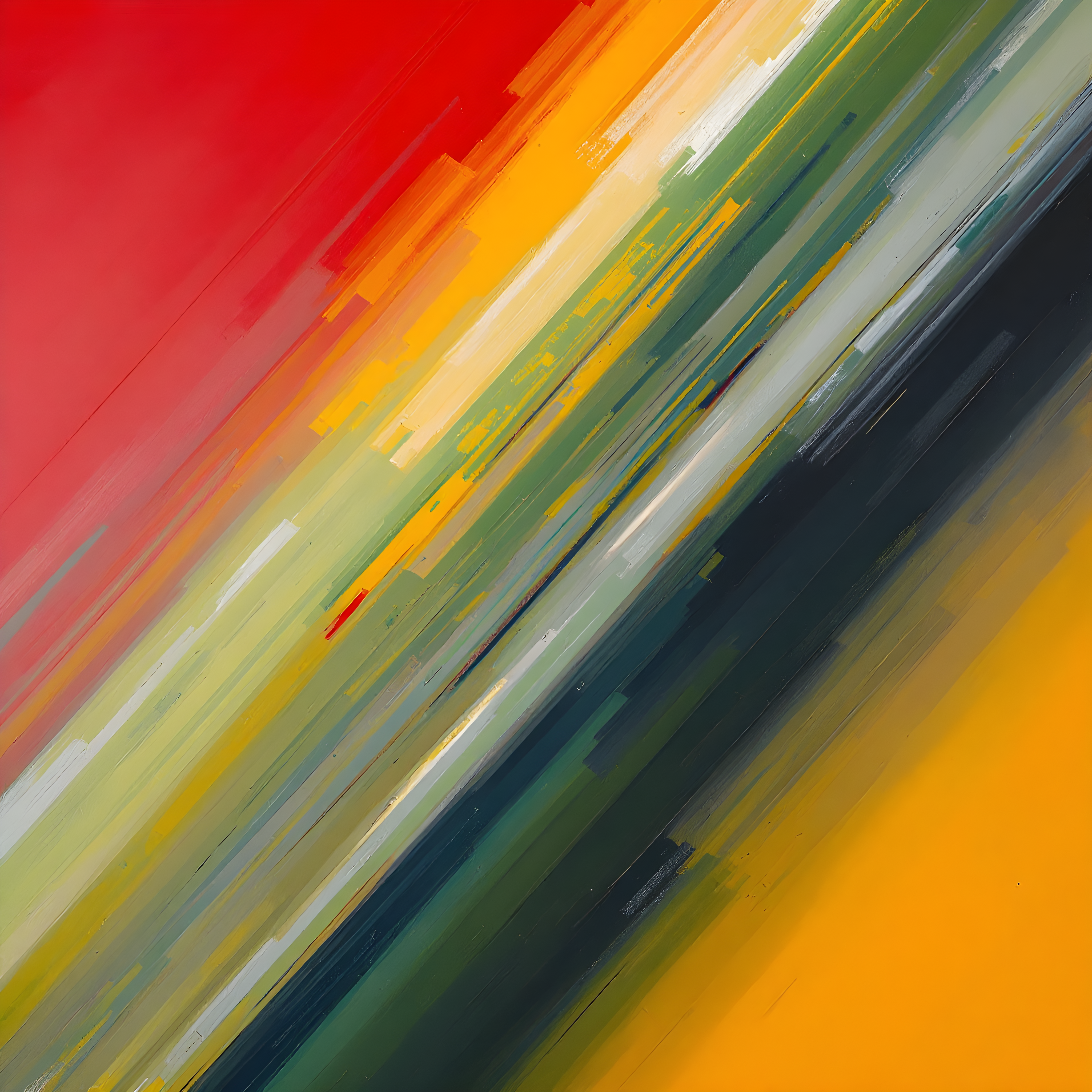 Over the Arctic Ocean northeast of Baffin Island, where the extreme cold creates a harsh crystalline landscape of ice and wind. The moderate southwest wind at 3.4 m/s drives diagonal paint drags from lower-left across the canvas, while the steep pressure gradient of 39.92 Pa reveals multiple complex layers beneath. The severe temperature anomaly of 47.1K warmer than normal creates an unexpected warmth bleeding through the cold surface layers, suggesting the drama of Arctic climate change through rich underlying reds and oranges revealed beneath icy greys and blues.