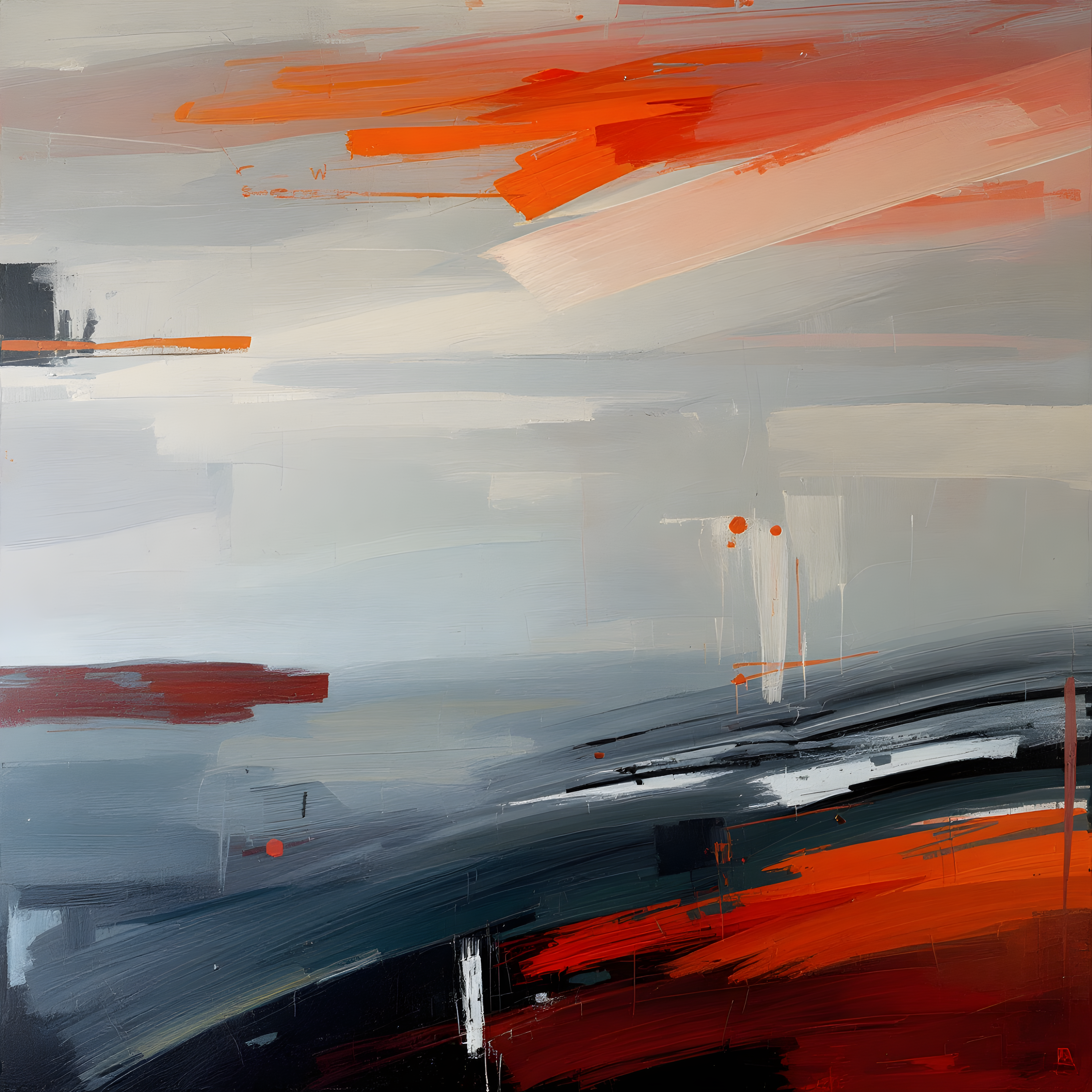 Over the Arctic Ocean north of the East Siberian Sea, extreme atmospheric conditions create a dramatic visual interpretation. The intense pressure gradient and strong southwesterly winds drive bold diagonal sweeps across the canvas, while the significant temperature anomaly reveals warm underlying colors beneath cooler surface layers. The high humidity adds depth and complexity to the paint-like textures, creating the multilayered revelation characteristic of Richter's squeegee technique.