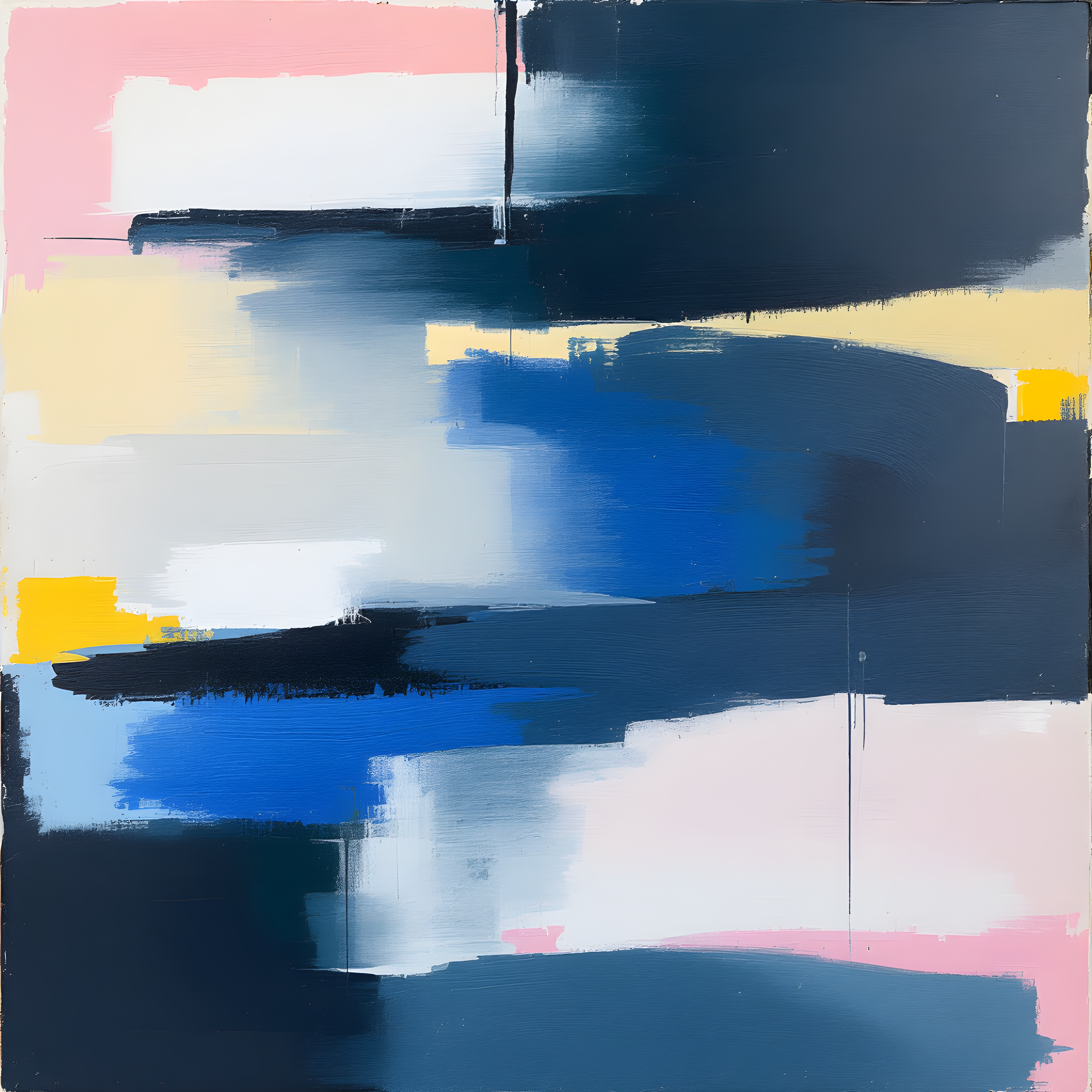 Over the Southern Ocean at 60 degrees south latitude on the Prime Meridian, in the turbulent waters between Antarctica and the South Atlantic, intense atmospheric dynamics create a scene of layered complexity. The moderate southwestern winds at 10.6 m/s drive diagonal paint drags from lower-left to upper-right across the canvas, while the steep pressure gradient of 7.62 Pa reveals multiple underlying color layers through the squeegee's revealing strokes. The significant positive temperature anomaly of 14.4 K above normal manifests as warm reds and oranges breaking through cooler surface greys and blues, creating Richter's characteristic interplay between concealment and revelation.