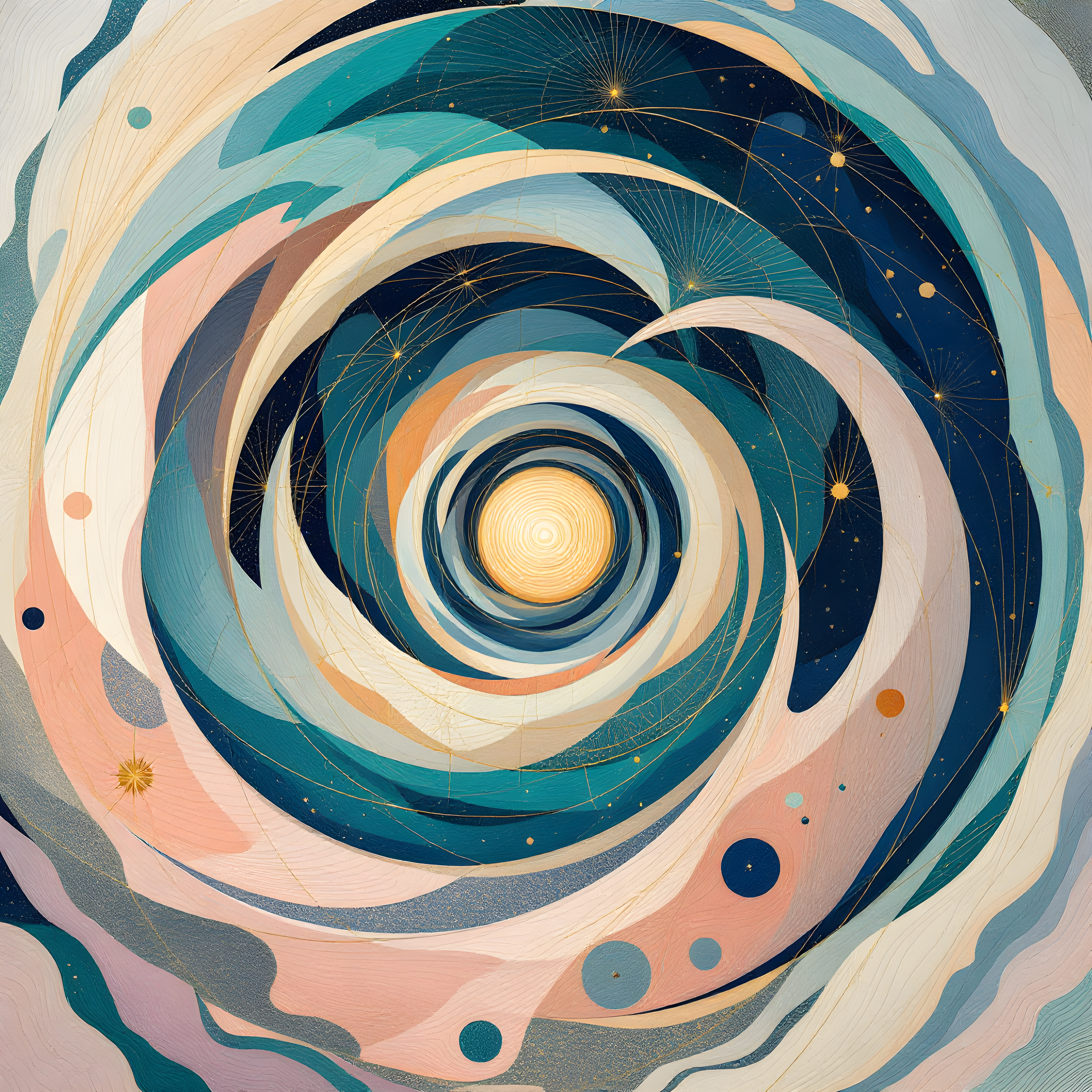 Over the Svalbard archipelago in the high Arctic, where sea ice meets the Greenland Sea, the atmosphere holds a mystical tension between opposing forces. The moderate pressure and high humidity create conditions for sacred geometric forms to emerge from the ethereal Arctic light, while the gentle southern wind guides spiraling organic growth patterns across the frozen landscape. The anomalously warm temperature for this polar region calls forth deeper jewel tones breaking through the characteristic Arctic pastels, suggesting hidden life force beneath the ice.
