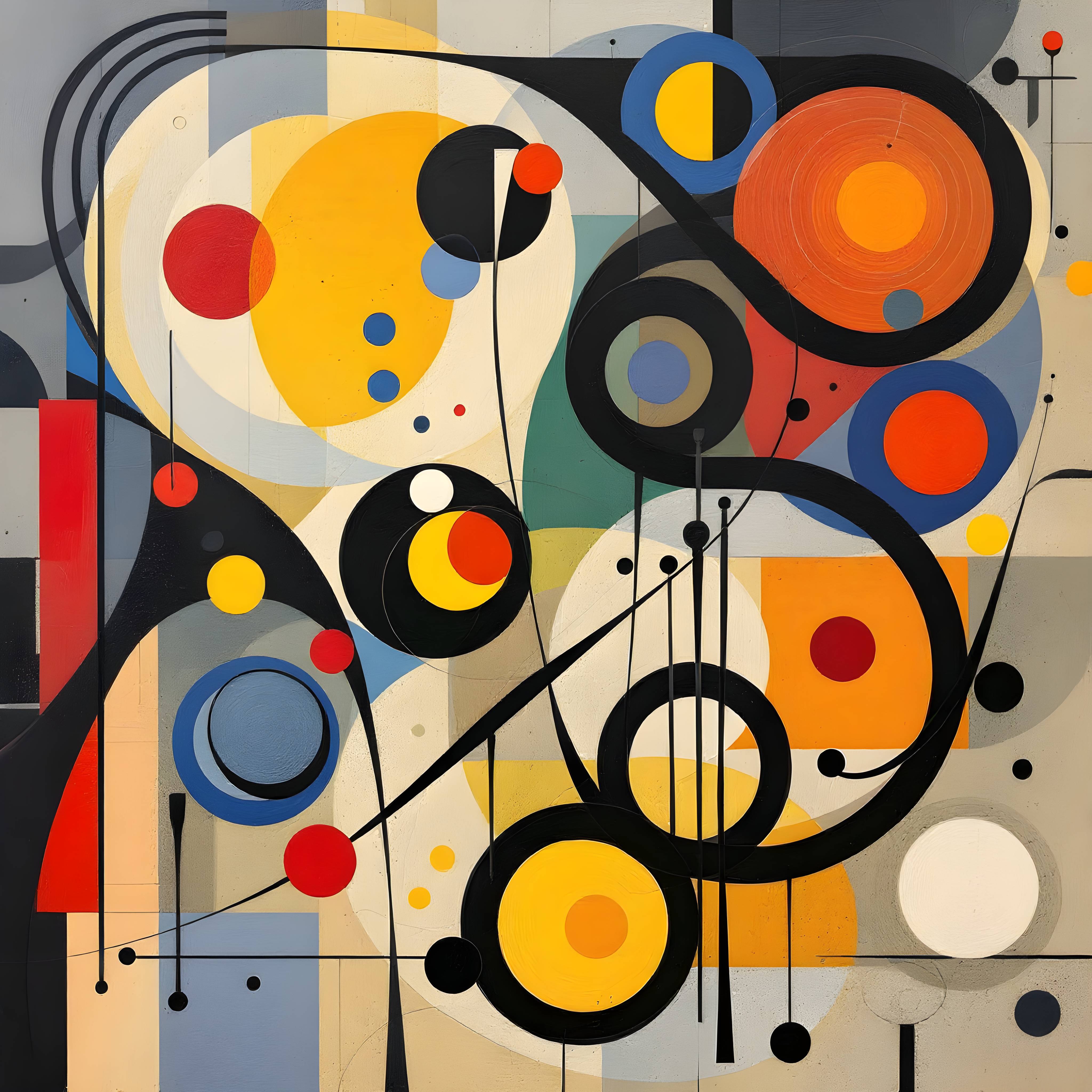 Over the South Atlantic near the Antarctic Peninsula, this location experiences intense low pressure and high winds from the west, creating a dynamic atmospheric disturbance with near-saturated air and anomalously warm temperatures for the region. The moderate wind speed of 10.5 m/s translates to a moderato tempo with medium-sized geometric forms in rhythmic arrangement, while the low pressure anchors heavy circular and triangular masses toward the bottom of the composition. The cold 3K temperature manifests as deep, bass-like circles and thick rectangular forms, with the westerly wind direction establishing a strong diagonal movement from right to left across the canvas.