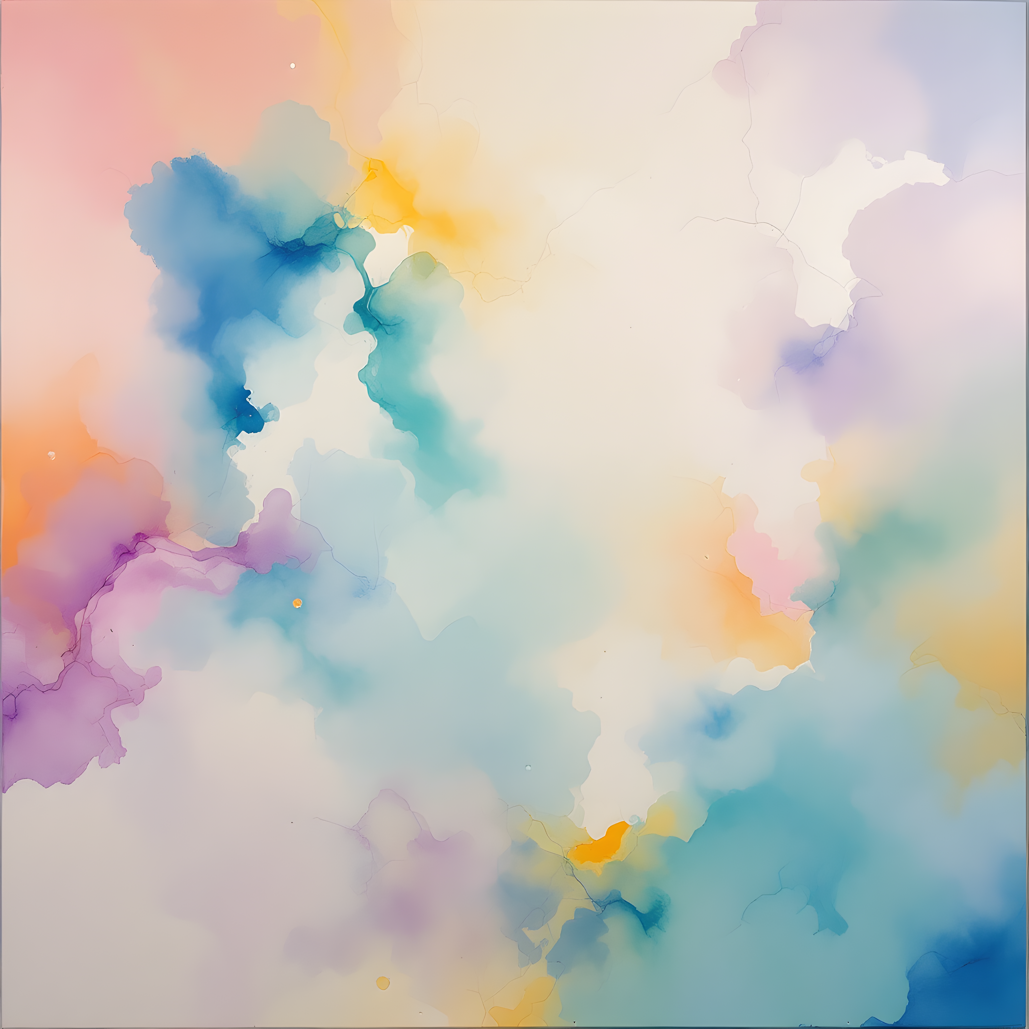 Over the Caribbean Sea southwest of Guatemala, where tropical warmth meets high atmospheric moisture, an ethereal composition emerges from the interplay of gentle winds and saturated air. The extremely high humidity of 95% creates layers of translucent color washes that seem to float and merge into one another, while the light precipitation forms subtle pooling effects that spread softly across the canvas. The moderate wind from the southwest guides delicate color bleeds in flowing, organic directions, and the warm temperature anomaly infuses the palette with glowing salmon pinks and golden ochres that soak outward like watercolor on wet paper.