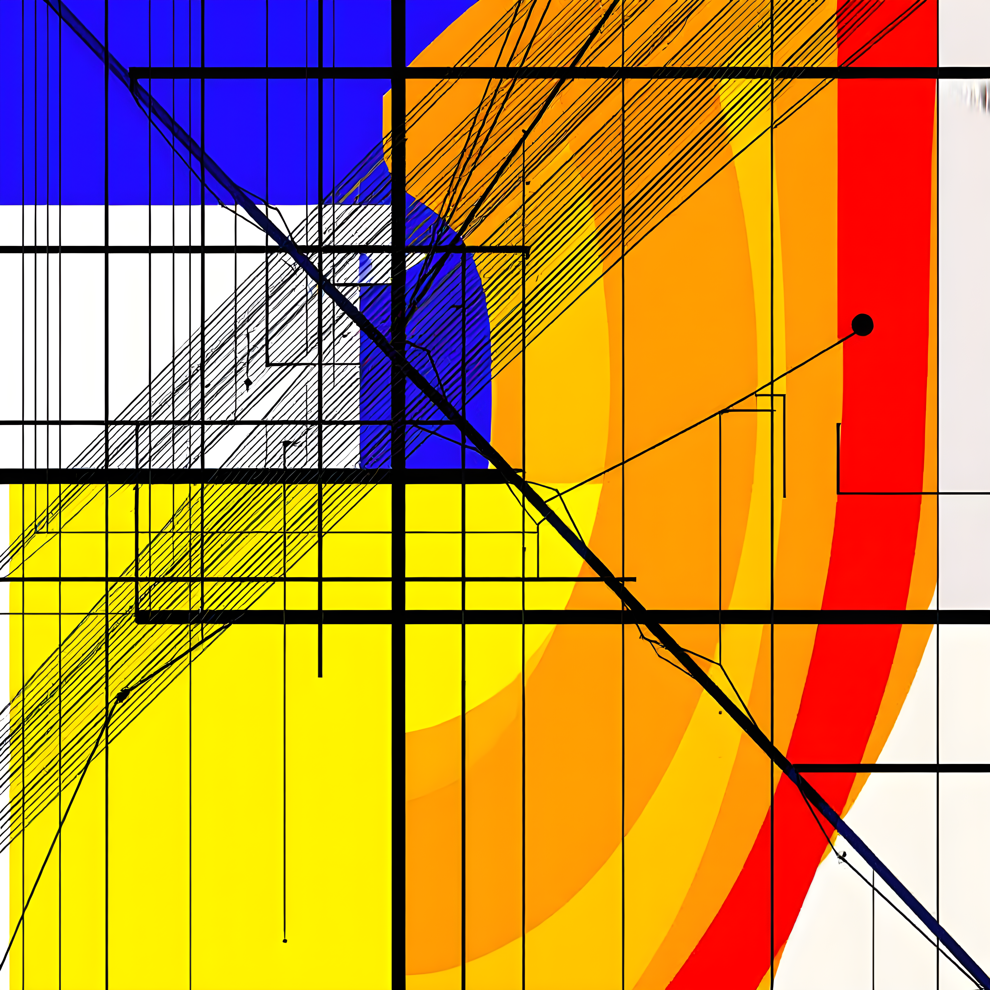 This composition depicts the atmospheric conditions over the remote Arctic Ocean north of the Chukchi Sea, between Siberia and Alaska. The extremely high pressure gradient of 50.65 Pa/cell creates a dense network of bold black lines fragmenting the canvas into numerous small rectangular cells, while the frigid -6.6K temperature establishes blue as the dominant primary color throughout the composition. The moderate 7.9 m/s wind from the southeast creates a strong asymmetric pull toward the lower right quadrant, and the 92% humidity translates into thick, substantial black dividing lines that boldly separate each color field.