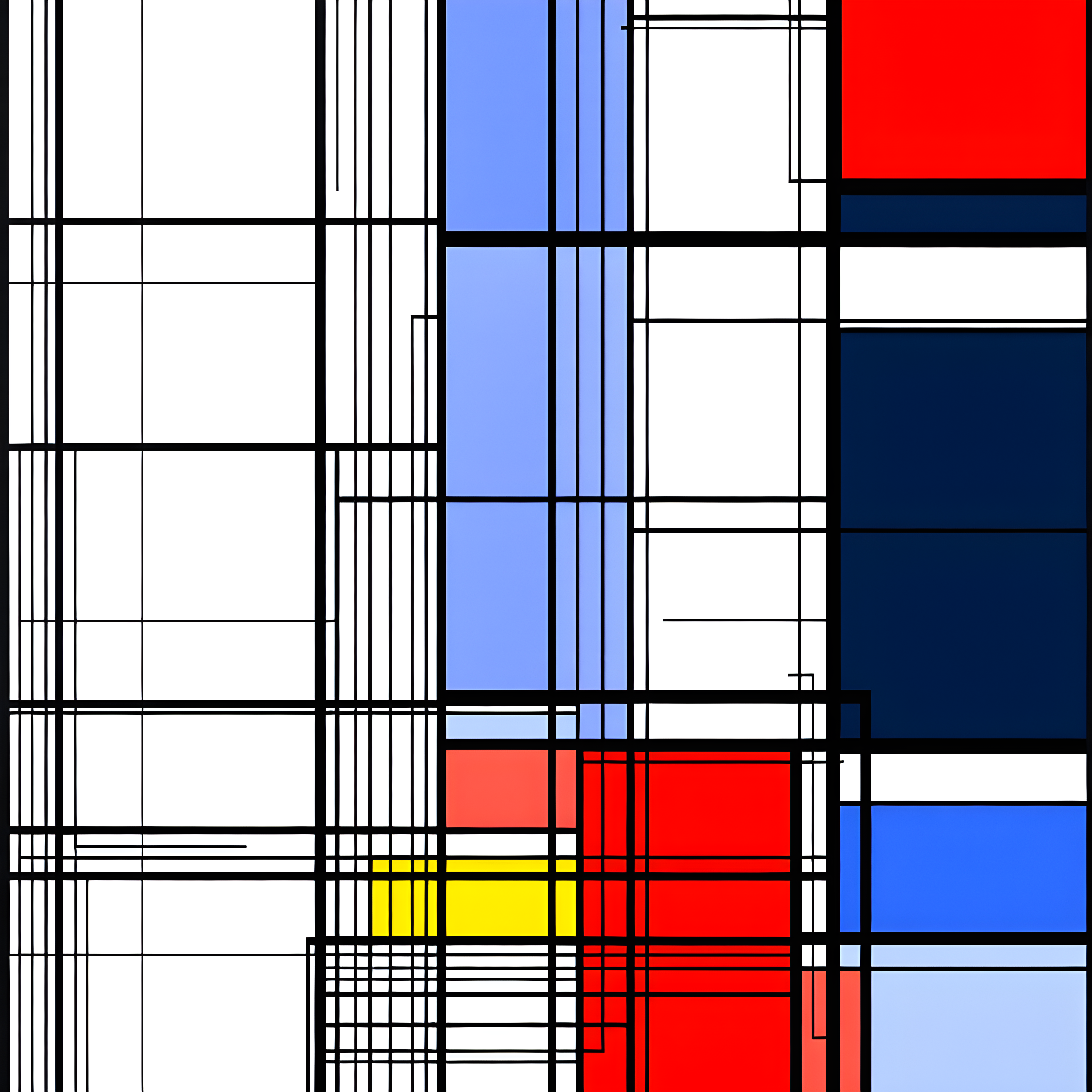 Over the Baffin Bay waters between Greenland and the Canadian Arctic Archipelago, intense atmospheric pressure gradients collide with bitter cold and high humidity in this harsh polar environment. The extreme cold temperature anomaly demands blue's dominance across the composition, while the significant pressure gradient creates a dense network of intersecting black lines forming numerous small rectangular cells. The moderate wind speed from the west introduces subtle asymmetric weighting toward the left side, and the high humidity manifests as thick, bold black dividing lines that segment the arctic atmosphere into a complex geometric grid.