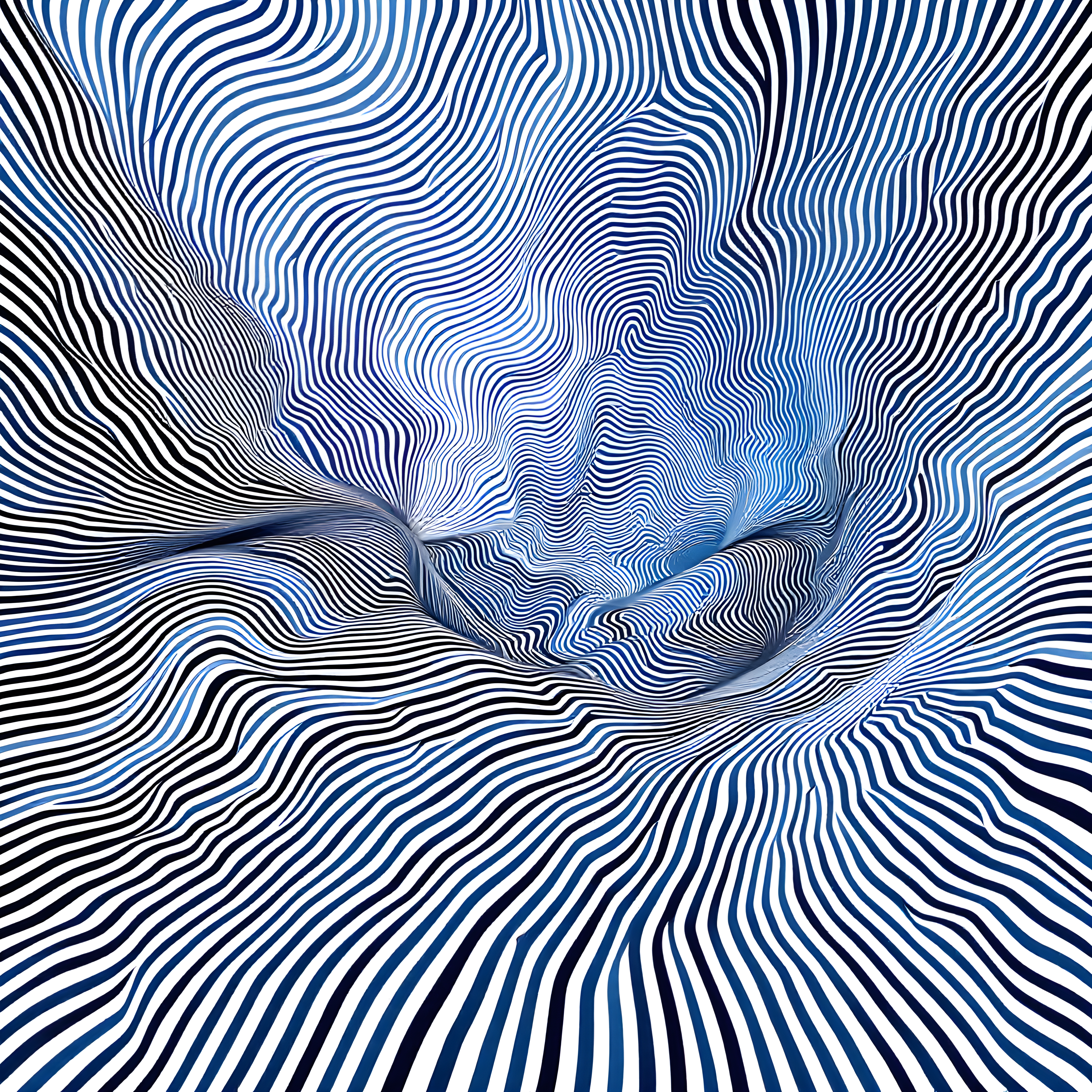 Over the Arctic Ocean north of eastern Siberia, this remote location experiences intense atmospheric dynamics with moderate winds from the northwest and extremely cold temperatures showing a significant positive anomaly from seasonal norms. The substantial pressure gradient of 48.3 Pa/cell creates conditions for tightly packed undulating lines, while the 8.9 m/s wind speed generates medium-frequency wave patterns that pulse across the composition. Given the frigid -7.4 K temperature, I've chosen Riley's stark black-and-white optical approach, with the 304-degree wind direction establishing diagonal undulations that flow from northwest to southeast across the portrait canvas.