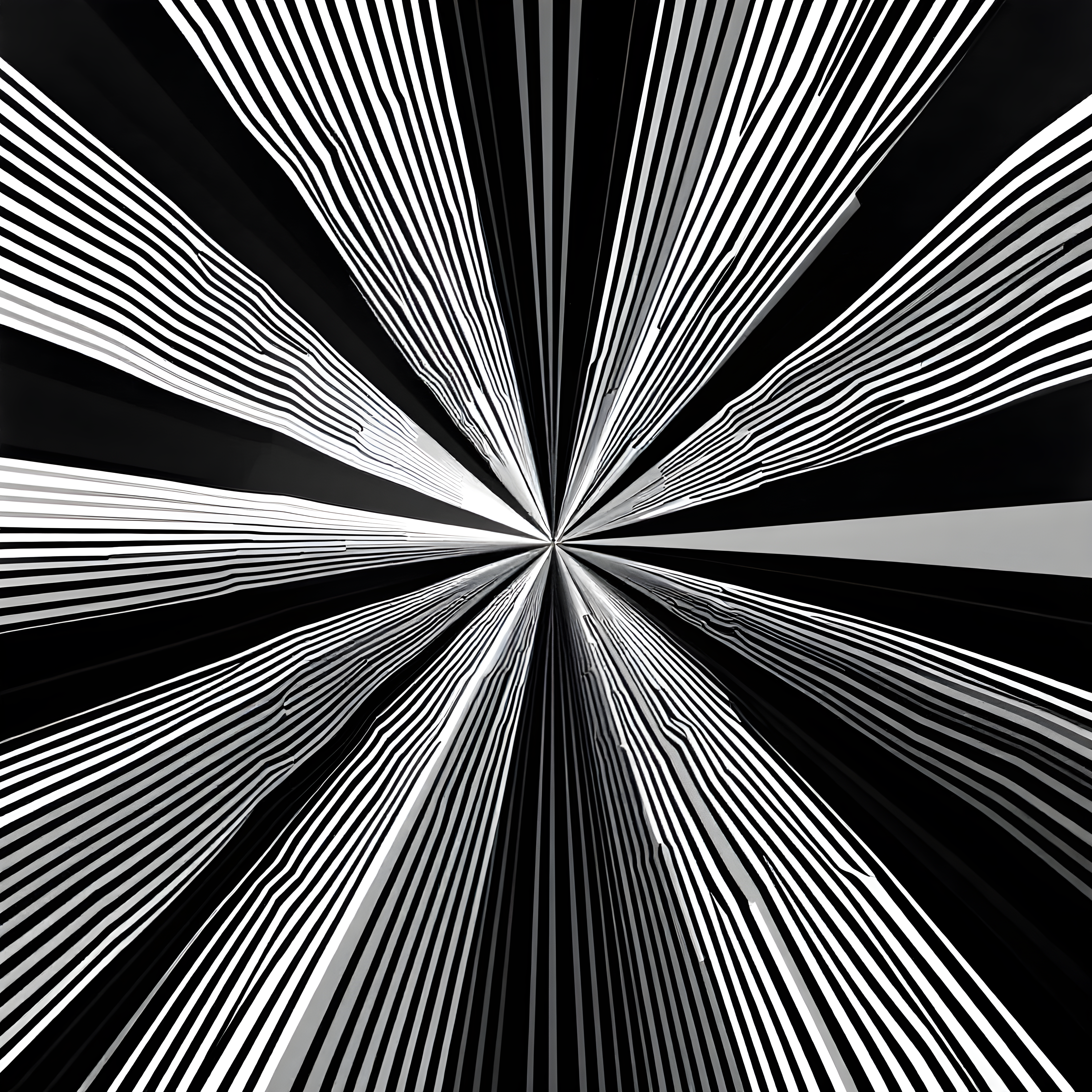 Over the Southern Ocean at 60 degrees south latitude along the Prime Meridian, powerful Antarctic winds create turbulent atmospheric conditions with high humidity and active precipitation. The strong 17.7 m/s winds from the northeast translate into rapid, tightly compressed undulating patterns that vibrate with optical intensity, while the sub-zero temperatures demand Riley's early black-and-white geometric vocabulary. The significant pressure gradient of 9.1 Pa/cell creates densely packed parallel lines that seem to pulse and shift, with the 42-degree wind direction establishing a diagonal flow across the composition that captures the relentless energy of this harsh polar maritime environment.