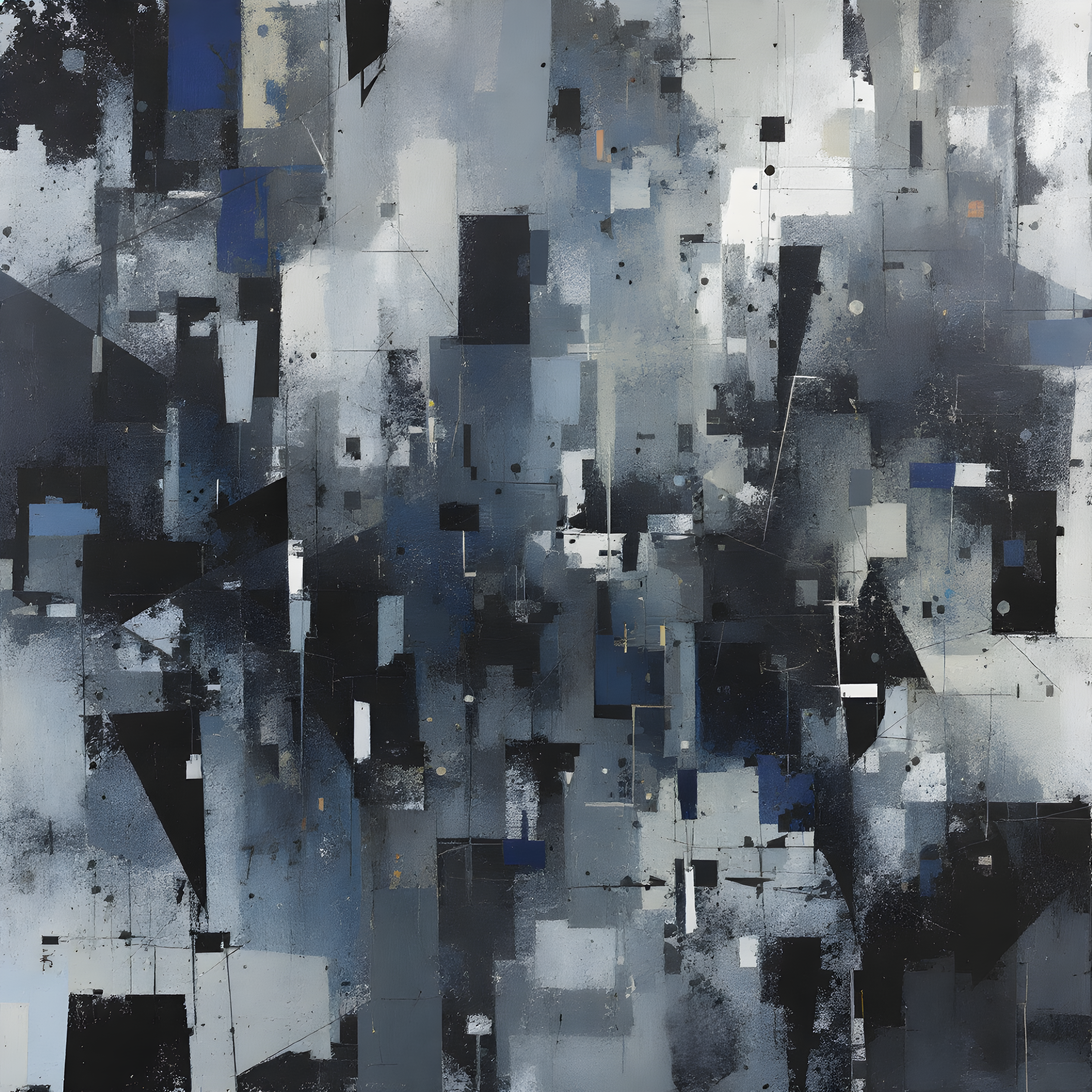 Over the high Andes of Bolivia, near the Chilean border, this location sits at extreme altitude where atmospheric pressure drops dramatically and temperature anomalies create stark contrasts against the thin air. The steep pressure gradient of 334.49 Pa/cell translates into densely archaeological layers where multiple painting sessions become visible simultaneously, while the significant temperature anomaly of 8.5K drives chaotic gestural marks breaking through more structured underlying compositions. The high humidity of 83% at this altitude creates translucent veils where earlier work shows through like memories surfacing, and the gentle wind adds subtle directional energy to the scrubbed under-layers.