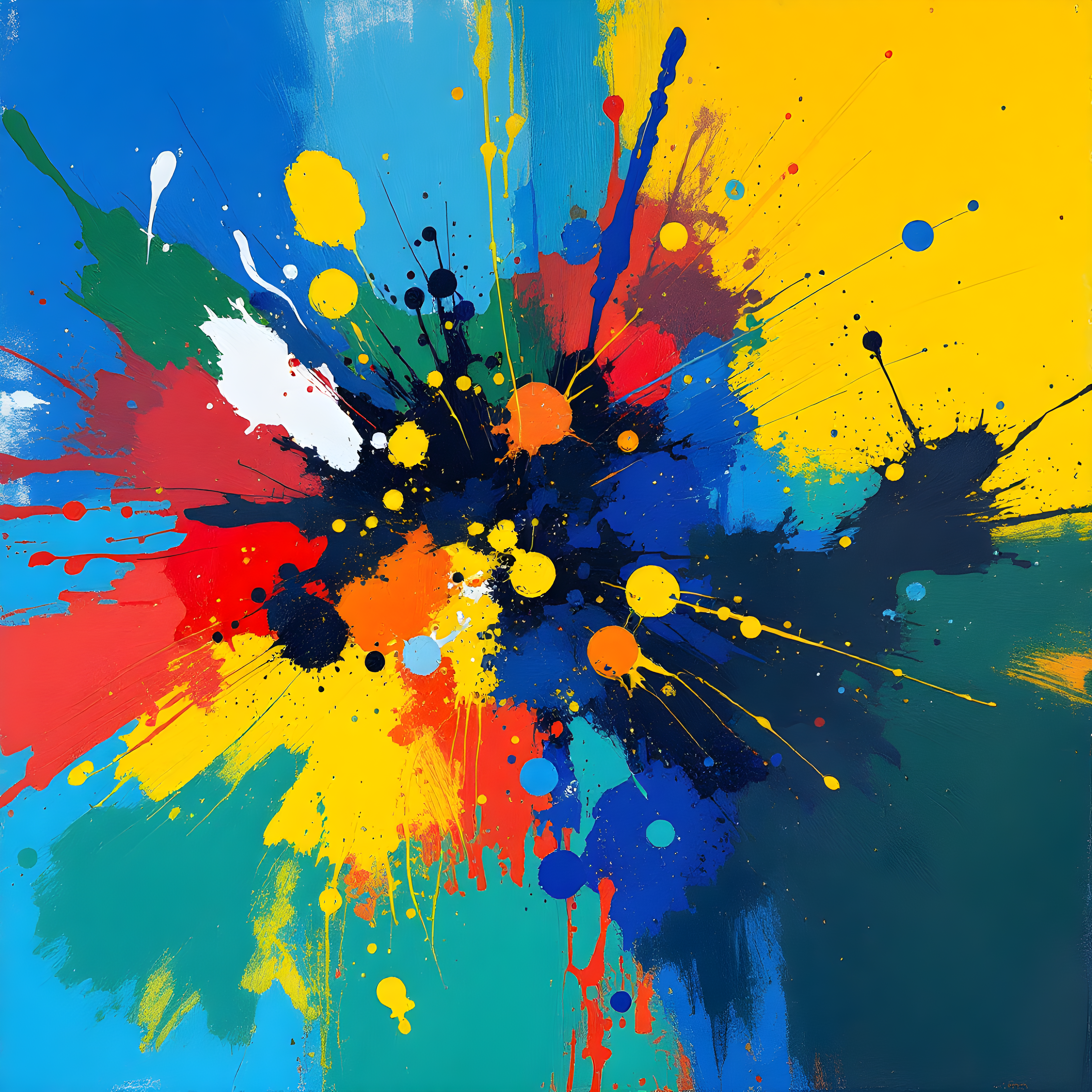 Over the Southern Ocean southeast of the Kerguelen Islands, where sub-Antarctic waters churn beneath stormy skies, intense atmospheric forces create a dramatic weather system. The low pressure of 995.7 Pa drives heavy color accumulation at the canvas edges in true Francis fashion, while the moderate 15.5 m/s winds from the northeast propel energetic splatters and organic bursts across the composition. The near-freezing 1.5K temperature with its significant positive anomaly translates to a palette mixing cool blues and greens with surprising warm accents, while the extreme 96% humidity and light precipitation manifest as flowing, liquid color pools that seem to drip and merge at the periphery.