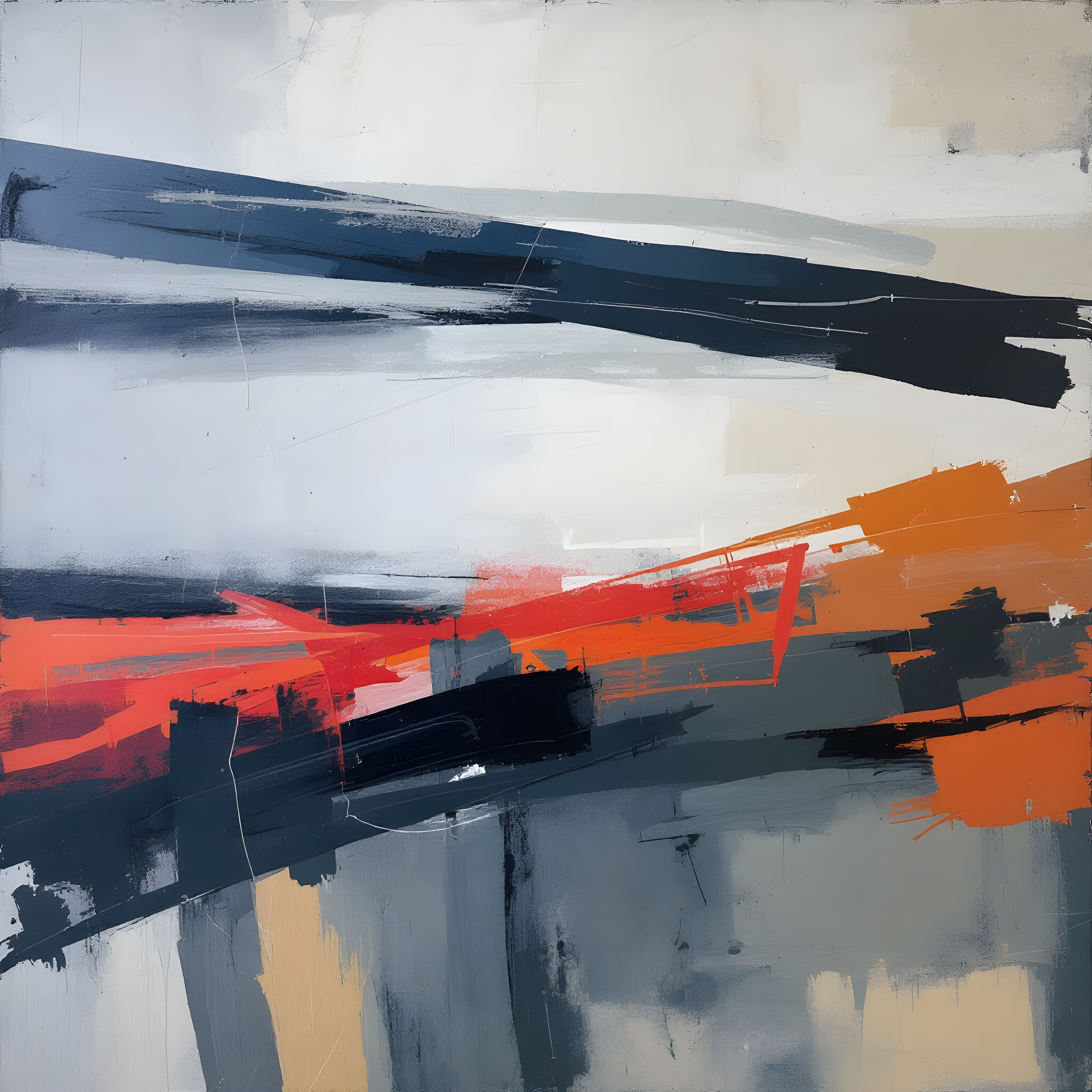 Over the Arctic Ocean north of Siberia, where the Laptev Sea meets the polar ice cap, an intense low pressure system creates dramatic atmospheric turbulence. The moderate southwest wind at 2.6 m/s guides diagonal paint drags across the canvas, while the steep pressure gradient of 35.6 Pa/cell demands multiple revealed layers of complex color interaction. The extreme cold of -17K with its significant 31.2K anomaly calls for deep, frigid undertones breaking through warmer surface layers, creating the tension between concealed and revealed that defines Richter's squeegee technique.