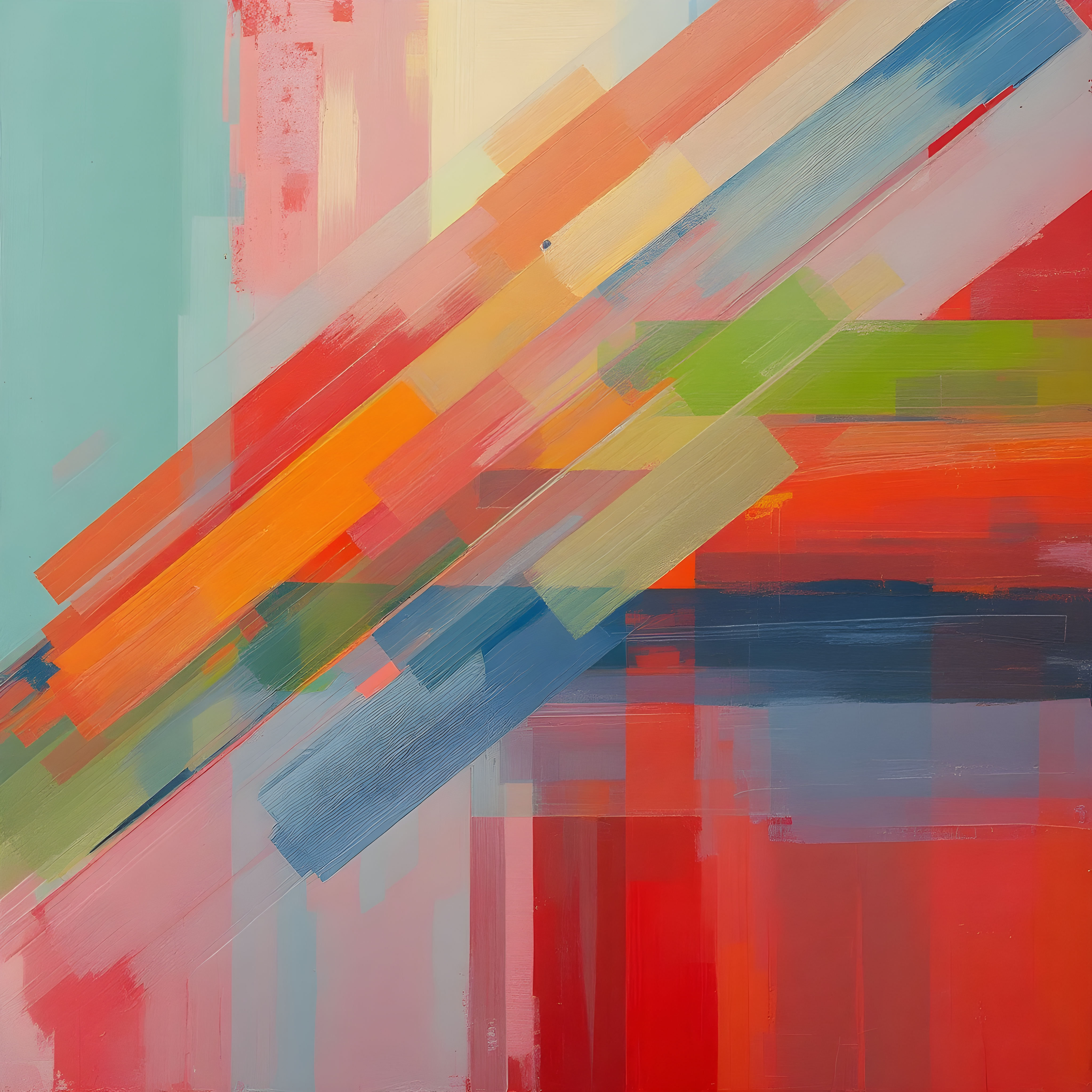 Over the high Altiplano of Bolivia and Peru, where extreme altitude creates thin air and stark temperature contrasts, this atmospheric snapshot captures an almost motionless moment with barely perceptible northwest winds. The extremely low sea-level pressure reading reflects the high elevation, while the significant temperature anomaly and high humidity suggest complex layering of air masses typical of Andean weather patterns. I've interpreted this through Richter's layered paint technique, using subtle vertical and near-vertical drags that mirror the gentle wind direction, with muted earth tones and cool grays emerging through warmer underlying layers to reflect both the temperature anomaly and the thin, moisture-laden atmosphere of this high-altitude environment.