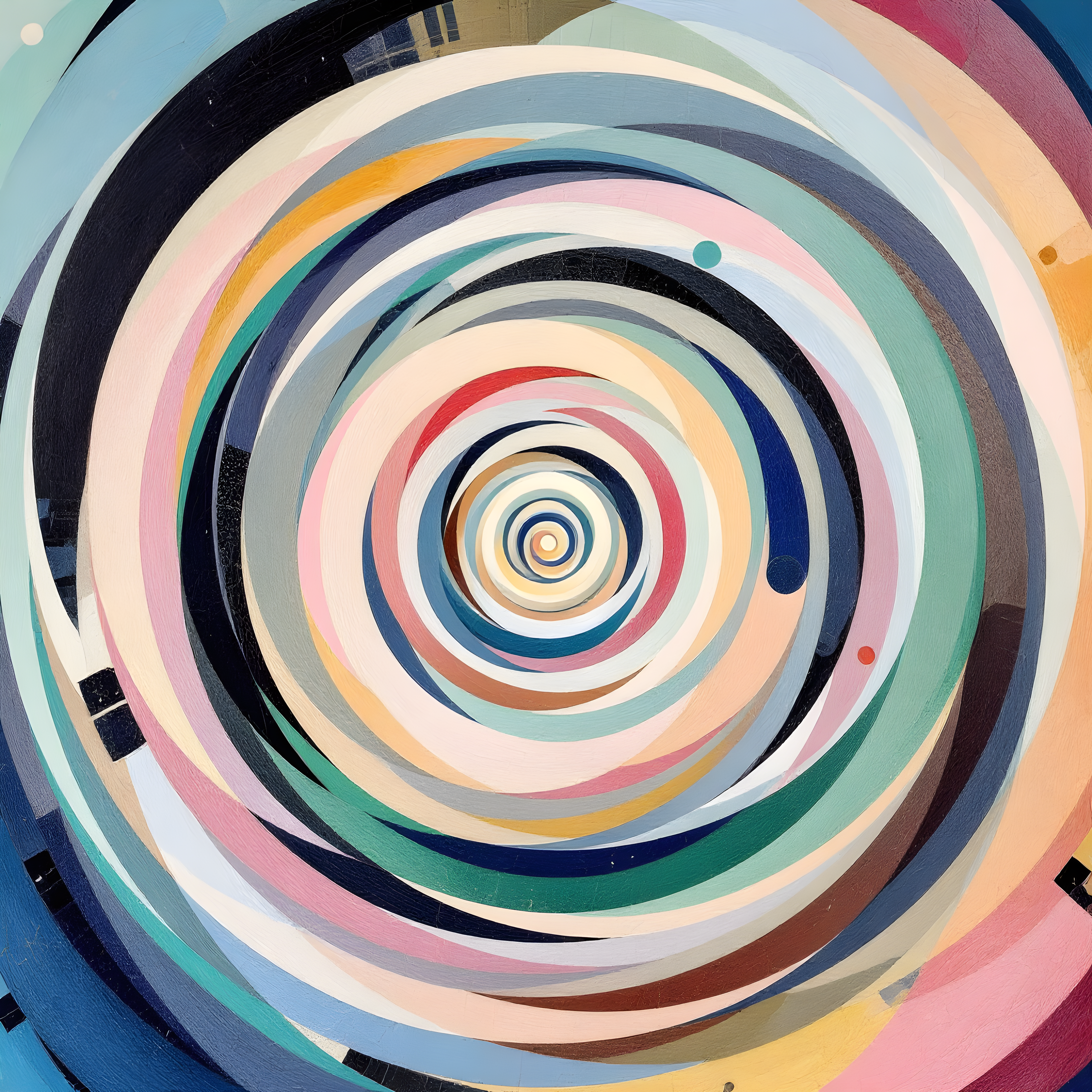 Over the Arctic Ocean at the intersection of the Prime Meridian and 60 degrees North, where the Greenland Sea meets the edge of the polar ice cap, harsh atmospheric forces create a mystical dance of pressure and wind. The moderate sea-level pressure (1004.9 Pa) with its strong gradient manifests as medium-scale sacred circles, while the significant 17 m/s wind from the southeast spirals these forms into tight, clockwise rotations. The extremely cold temperature of 6.1 K calls for ethereal pastels dominating the composition, yet the high 83% humidity transforms geometric perfection into flowing, organic botanical forms that seem to breathe with arctic moisture.