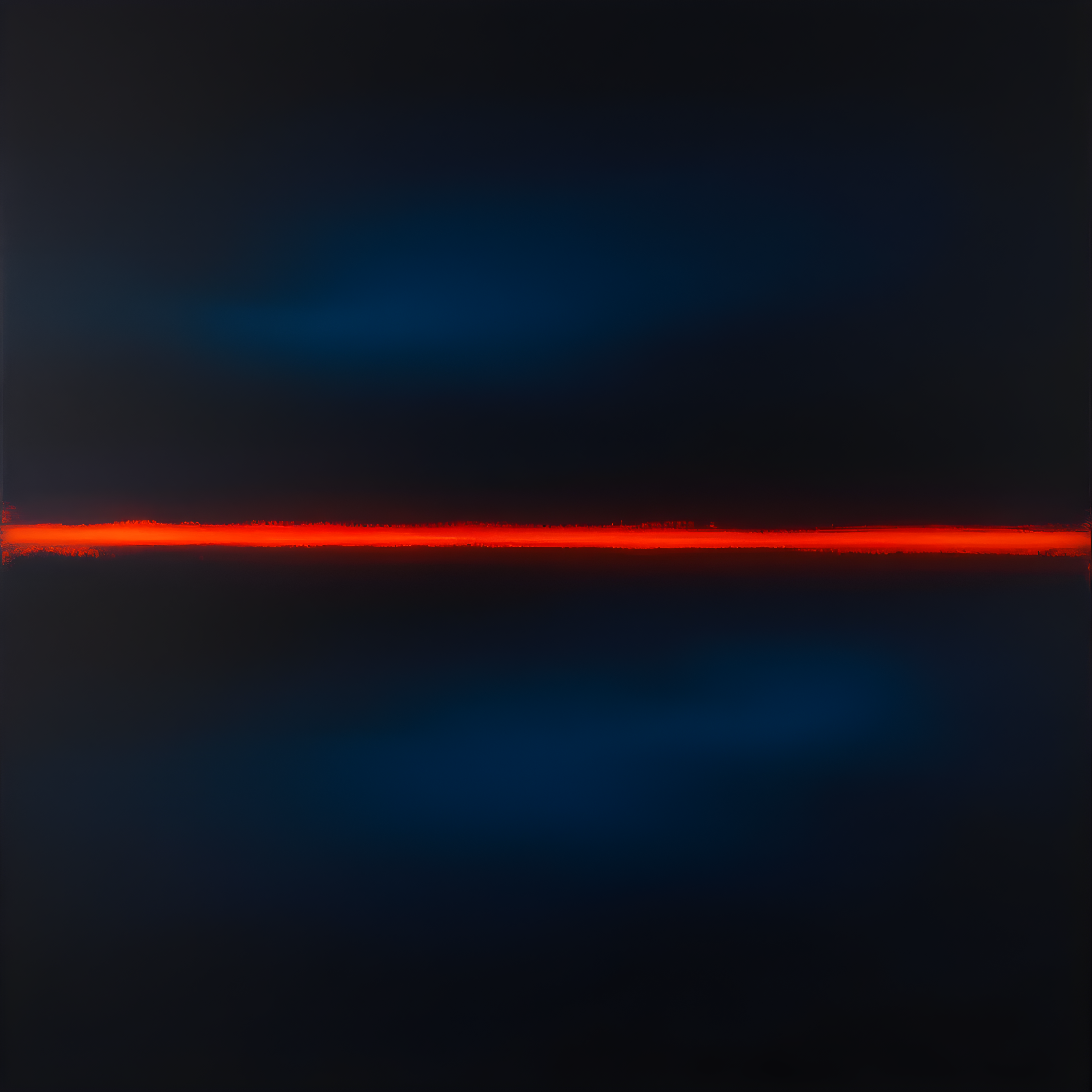 Over the North Sea in the Arctic Circle, where frigid waters meet the edge of the polar ice sheet, extremely cold temperatures of 7.3 Kelvin create a landscape of profound darkness and contemplation. The moderate low pressure system generates two primary color bands that dominate the canvas, while strong winds from the southeast blur the boundaries between deep midnight blues and charcoal blacks, and the very high humidity of 94% creates an inner luminosity that makes these cold colors seem to glow with ethereal light from within.