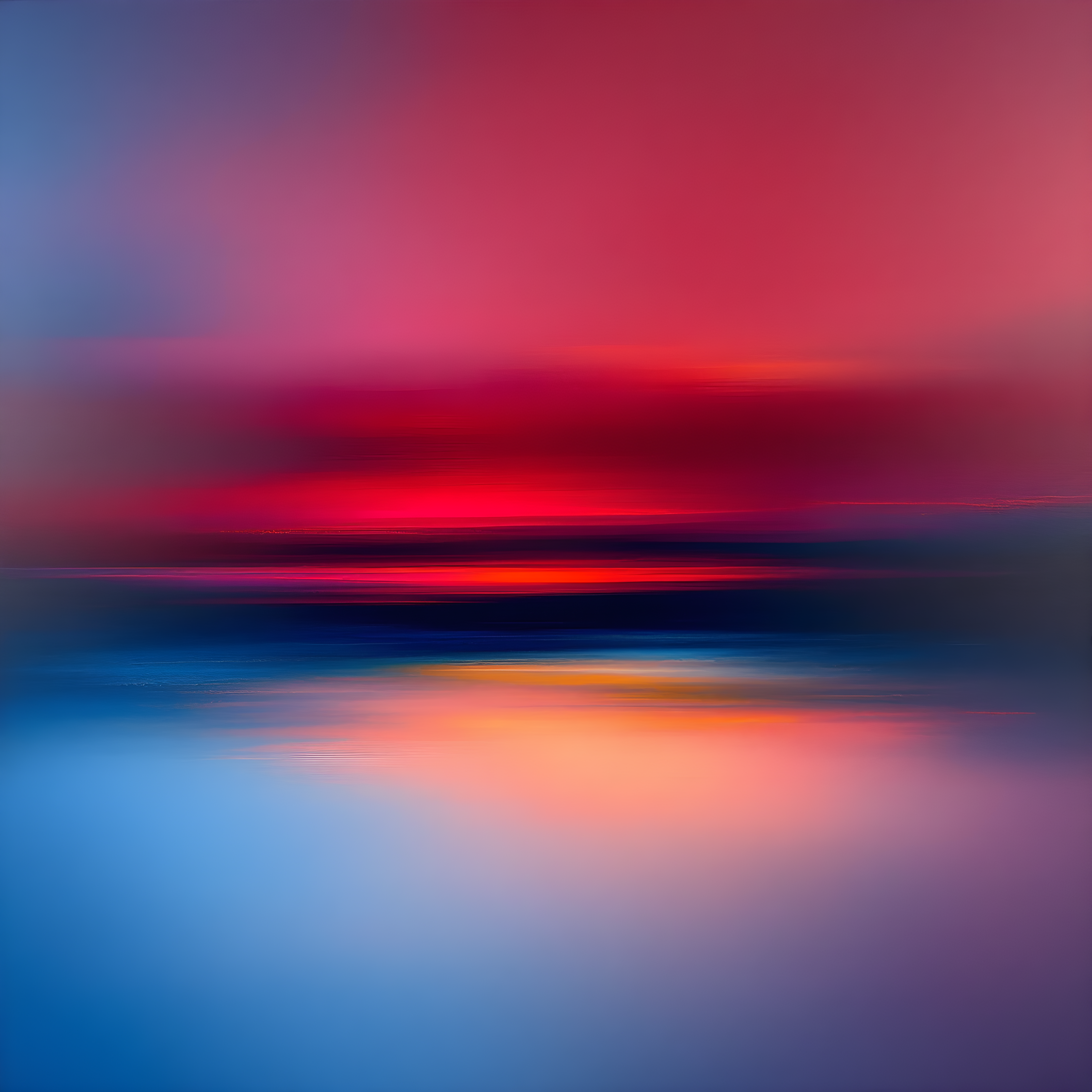 Over the Arctic Ocean northeast of Greenland, where frigid air meets nearly saturated atmosphere, the temperature hovers just below freezing with an unusual warmth anomaly that speaks to the complex dynamics of polar weather systems. The near-freezing temperature calls for deep contemplative blues and dark teals, while the extraordinary 99% humidity creates an otherworldly luminosity that makes these cold tones seem to glow from within like aurora light trapped in ice. The moderate wind from the northeast and low pressure system generate two substantial color bands that breathe and vibrate against each other, their boundaries soft and alive like the ever-shifting Arctic atmosphere.