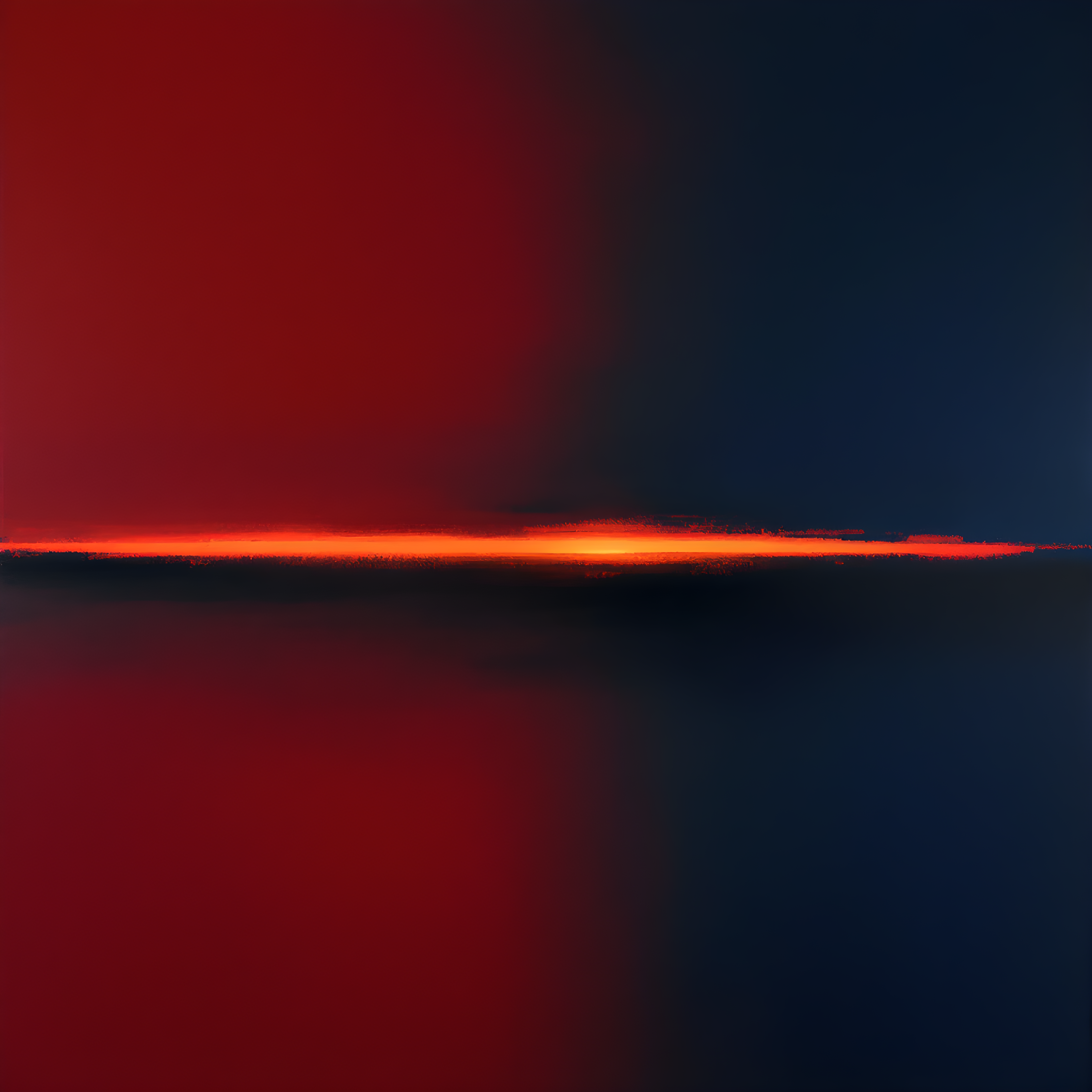 Over the North Atlantic, roughly 500 miles west of the European continental shelf, cold maritime air masses dominate this oceanic region. The extremely cold temperature of 10.9 K drives this composition into Rothko's contemplative period with deep blues, blacks, and dark greens that seem to absorb light while mysteriously glowing from within. The moderate pressure creates three distinct but softly merging horizontal bands, while the strong northwesterly winds blur all boundaries into breathing, living edges, and the high humidity gives each color field an inner luminescence.