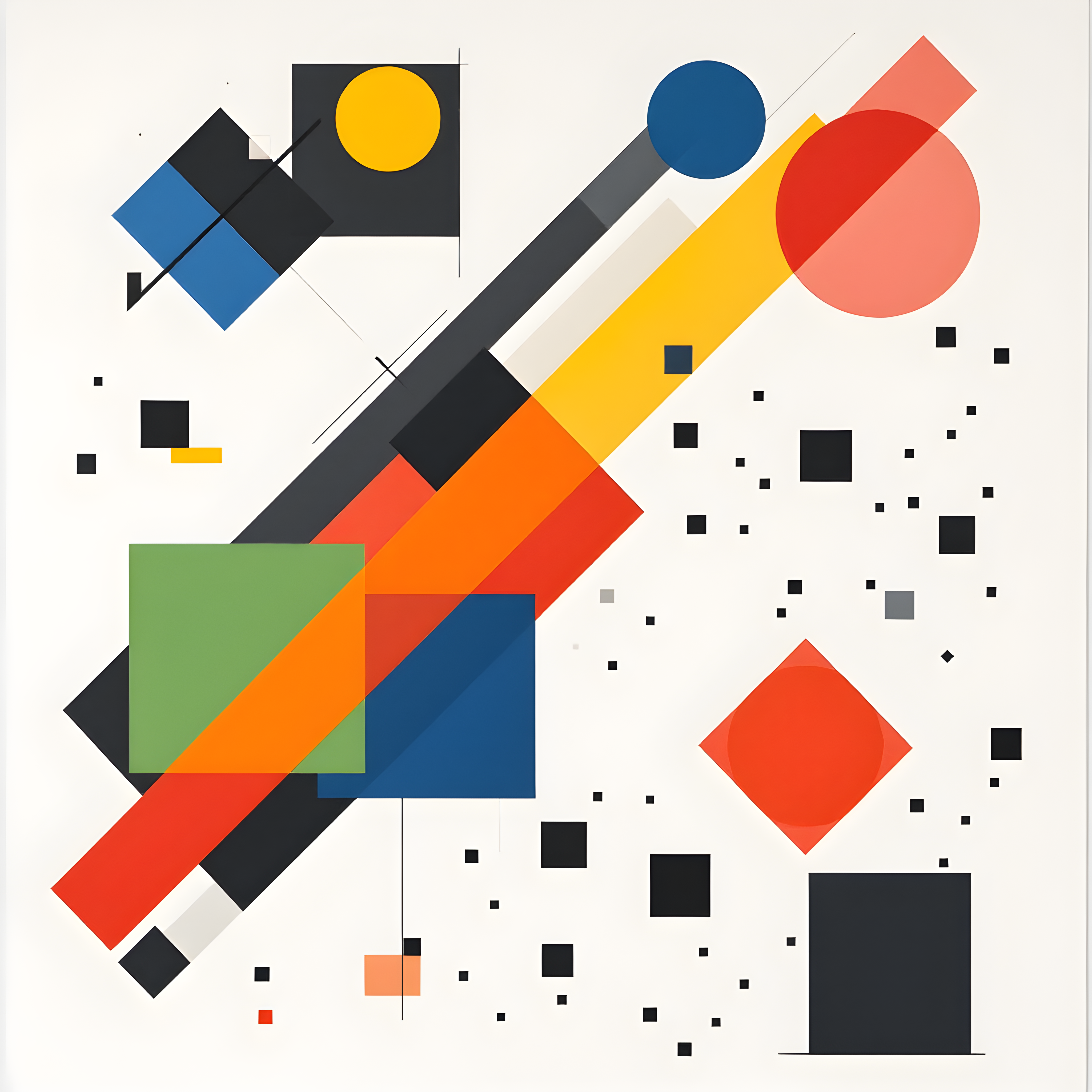 Over the Arctic Ocean at the intersection of the Prime Meridian and 60 degrees north latitude, where the Greenland Sea meets the Norwegian Sea in perpetual twilight. The strong southerly wind at nearly 10 meters per second creates pronounced diagonal tensions in the composition, with geometric forms tilted at steep angles suggesting rapid movement through cosmic space. The extremely cold temperature of 7.6 Kelvin and high humidity of 92% manifests as predominantly black and deep blue suprematist elements floating against the dominant white void, while the moderate pressure generates a balanced density of forms neither too scattered nor too concentrated.