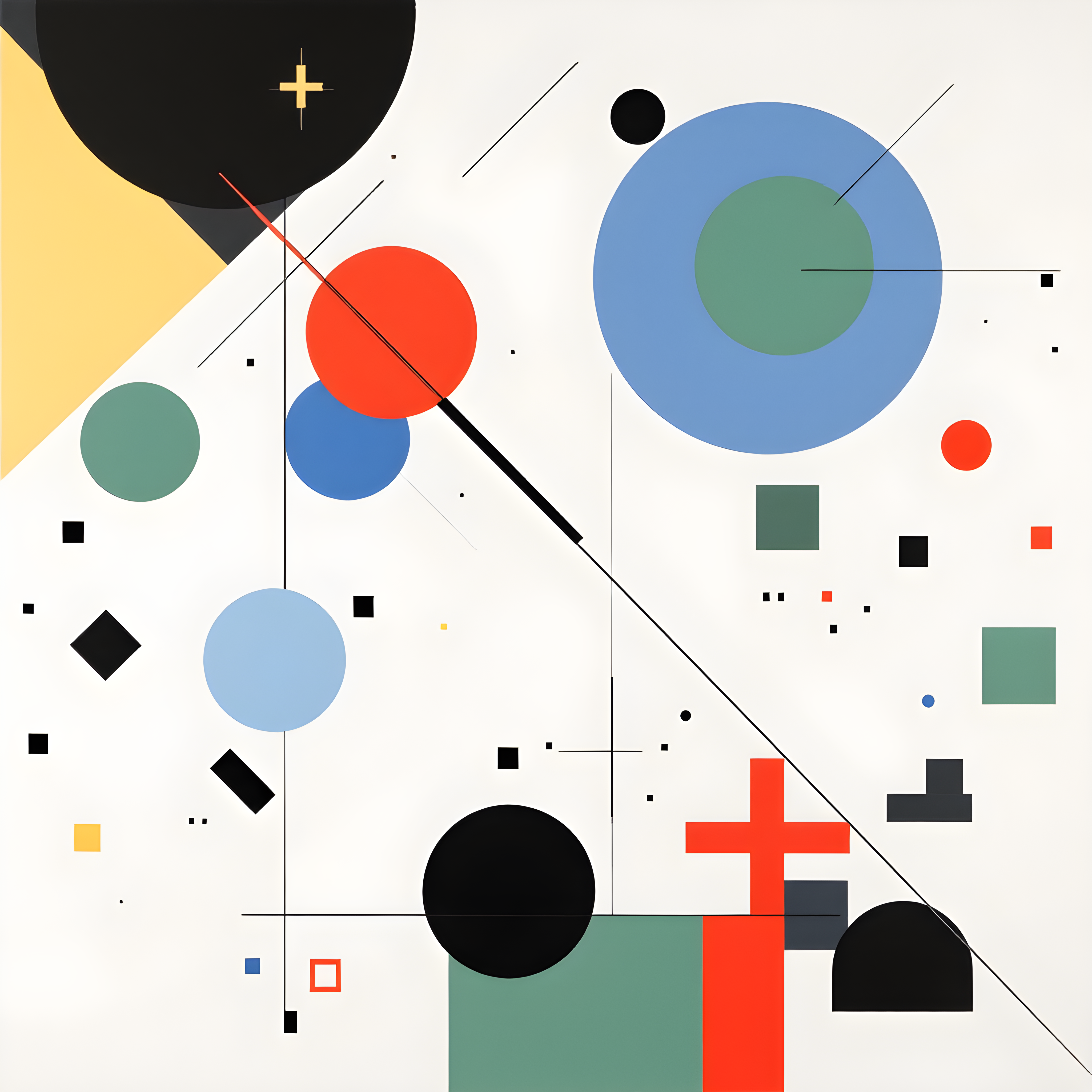 Over the remote Arctic Ocean northwest of Canada's Yukon Territory, extremely low pressure creates a sparse atmospheric field dominated by a few monumental forms. The bitter cold temperatures manifest as deep black and blue geometric shapes, while the gentle southwesterly wind tilts these suprematist elements at subtle diagonal angles, creating a sense of slow drift across the white void. The high humidity adds density to the composition without precipitation, resulting in fewer but more substantial geometric masses floating in cosmic weightlessness.