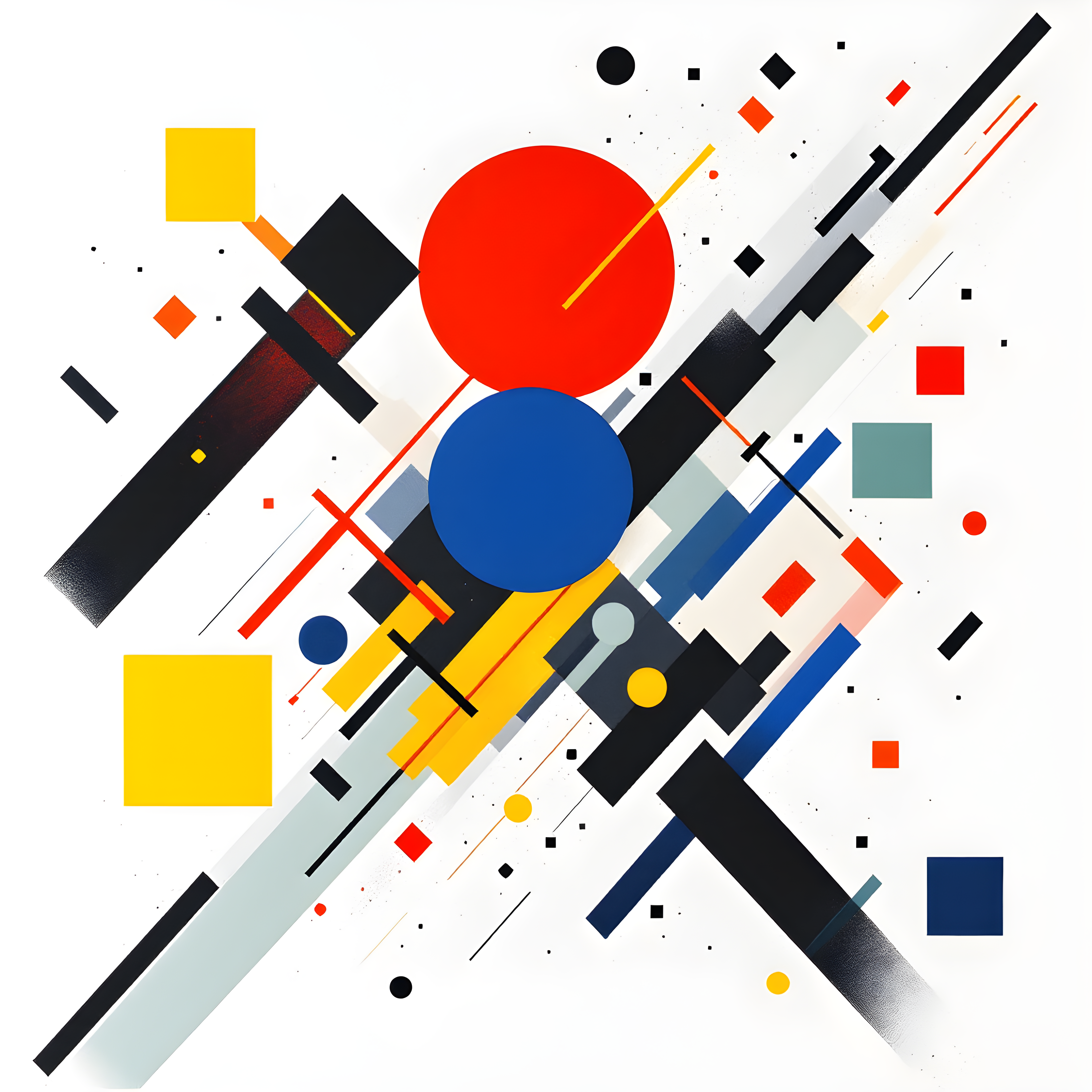 Over the frozen waters of the Labrador Sea between Greenland and northern Canada, brutal Arctic conditions dominate this remote location at 60°N, 70°W. The extremely cold temperature of -22.7K with high pressure and moderate westerly winds creates a stark, crystalline atmosphere where geometric forms seem suspended in the frigid air. I've interpreted this harsh Arctic environment through Malevich's suprematist lens, using predominantly black and deep blue geometric shapes arranged in diagonal compositions that reflect the wind's direction from 275 degrees, while the high pressure manifests as multiple scattered forms rather than heavy, dominant masses.