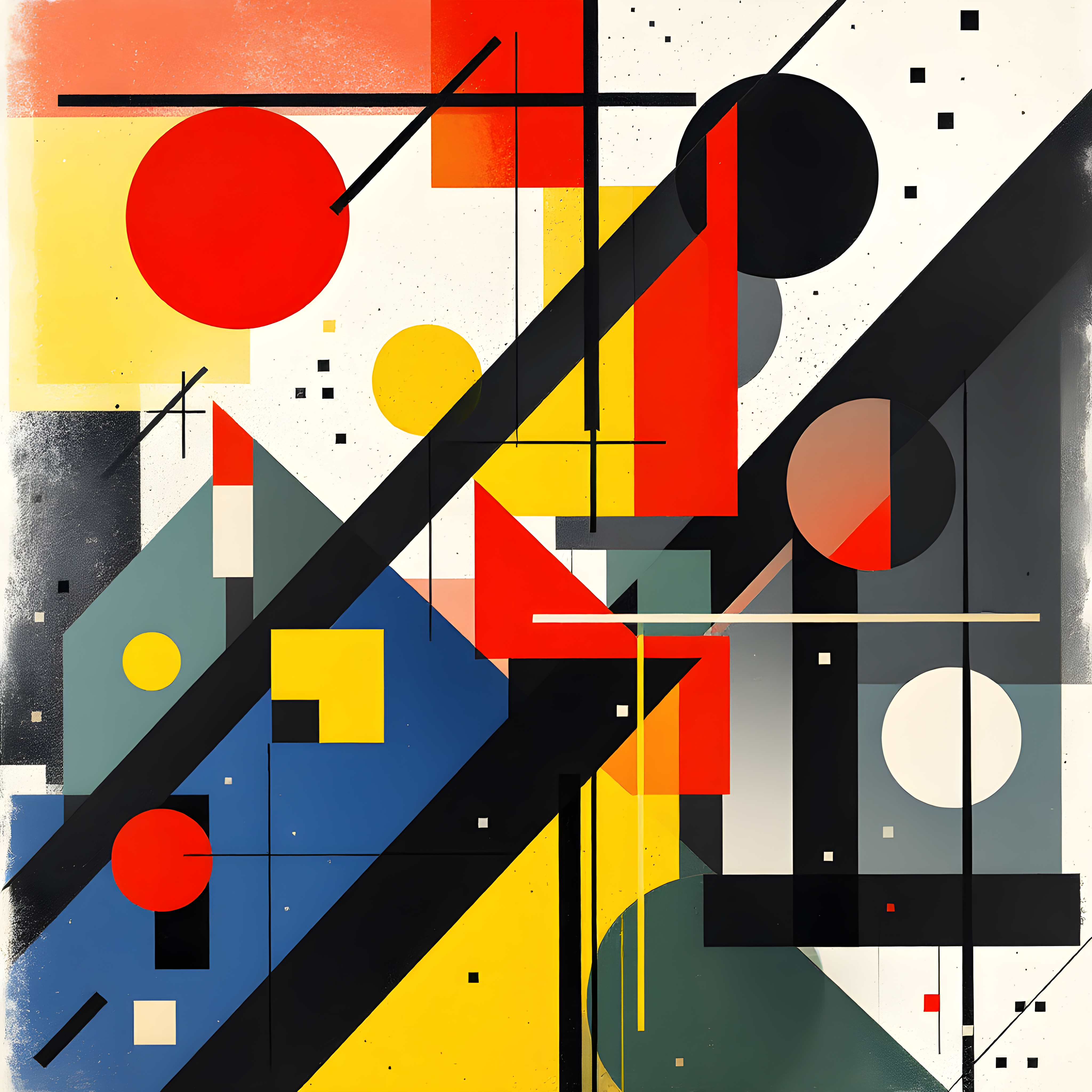 Over the high Andes of Peru and Bolivia, where the extreme altitude creates an otherworldly atmospheric environment with exceptionally low pressure and frigid temperatures despite the tropical latitude. The barely perceptible wind and moderate humidity create a sense of suspended stillness, while the absence of precipitation suggests the stark, crystalline air of the altiplano. I've interpreted this rare high-altitude tropical atmosphere through scattered geometric forms floating in vast white space - the low pressure translated into fewer, more substantial shapes, the gentle wind creating subtle diagonal tensions, and the extreme cold expressed through predominantly black and deep blue elements punctuated by occasional warmer tones.