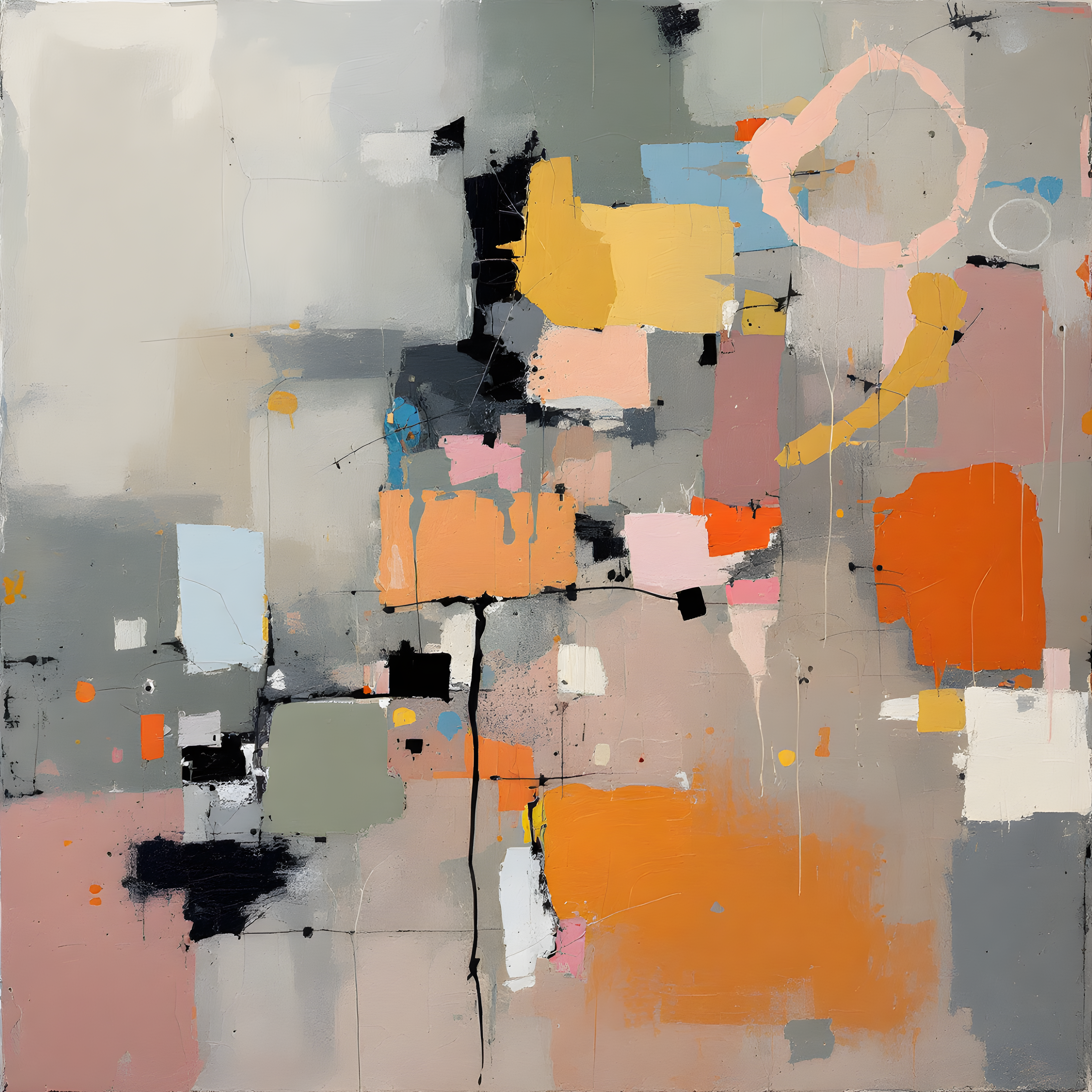 Over the North Atlantic, well off the coast of Newfoundland in the cold waters where the Labrador Current meets warmer air masses, a moderate pressure gradient creates layered atmospheric complexity while strong northwest winds carve through the marine boundary layer. The significant temperature anomaly and high humidity generate the tension between chaotic weather systems and underlying oceanic structure, manifesting as aggressive gestural marks breaking through contemplative sedimentary layers. Light precipitation adds temporal drip marks that suggest the slow accumulation of maritime memory across this remote seascape.