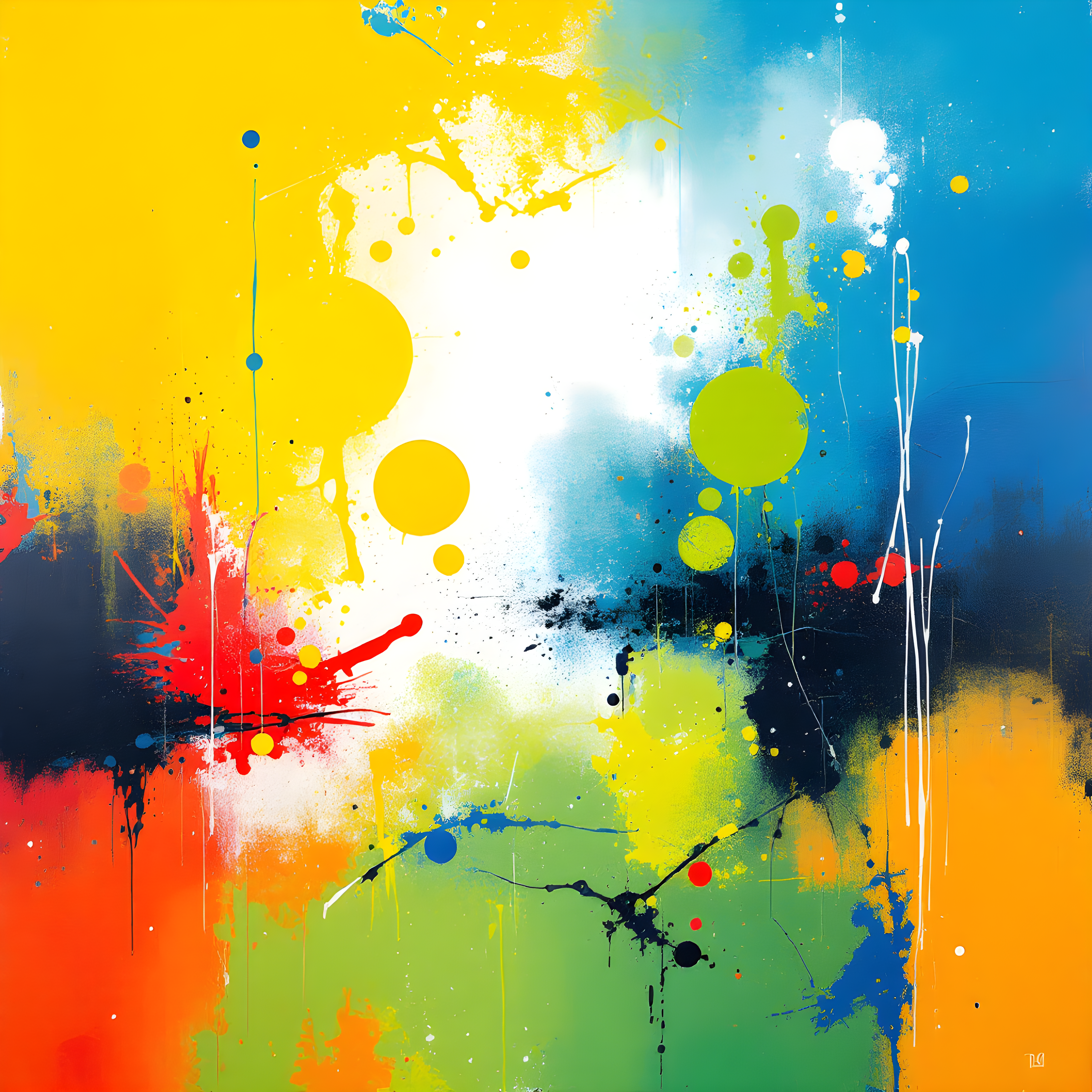 Over the Manchurian plains of northeastern China, where continental winds sweep across vast steppes, an atmospheric drama unfolds with low pressure drawing moisture-laden air into spiraling motion. The moderate southwest wind at 5.3 m/s, combined with 83% humidity and significantly warmer than average temperatures, creates conditions ripe for Sam Francis-inspired explosive color energy. I interpret the low pressure system as dense accumulations of saturated color pooling at the canvas edges, while the warm temperature anomaly ignites vivid primary hues that burst outward with wind-driven intensity, leaving luminous white breathing space at the composition's heart.