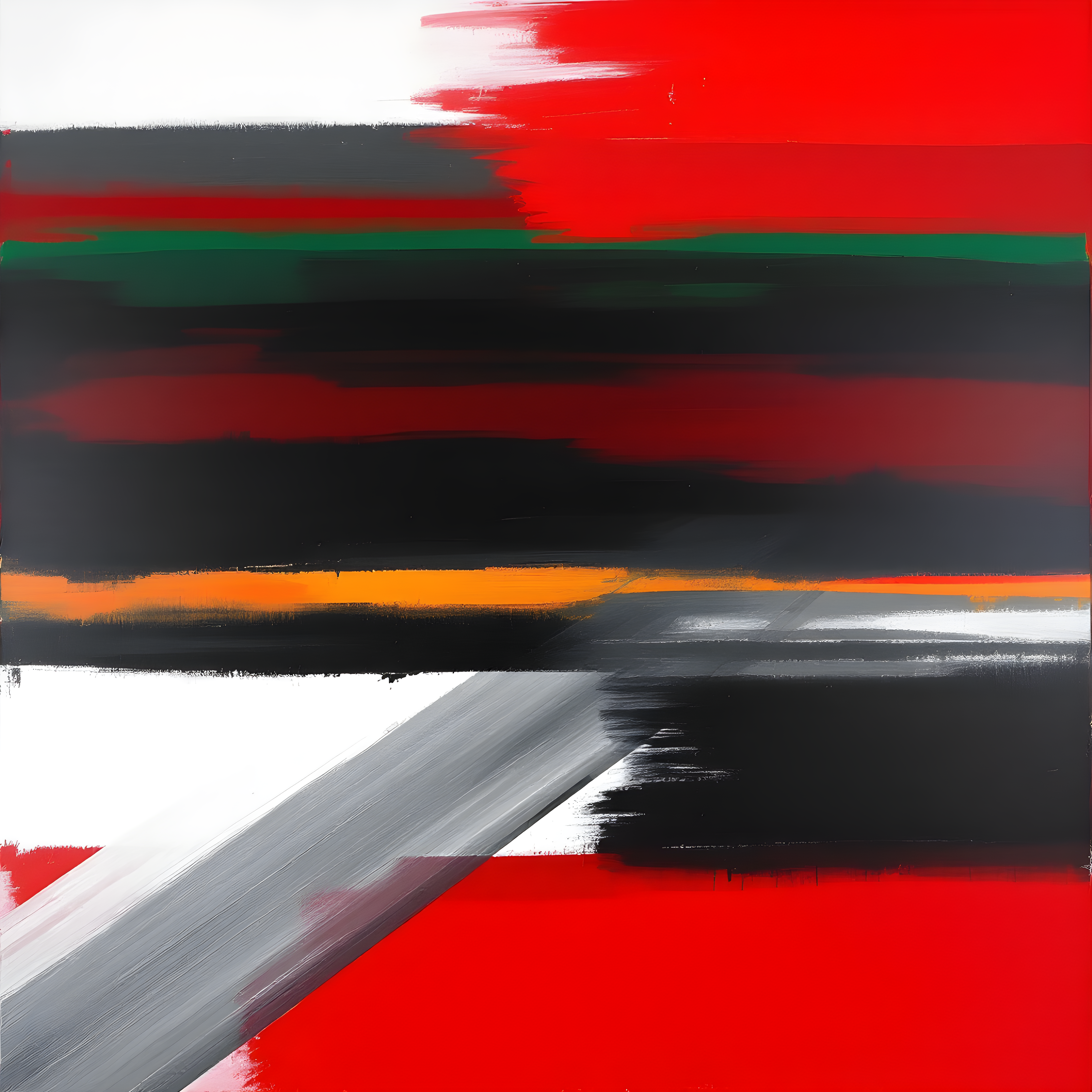 Over the high Arctic north of Labrador and west of Greenland, extreme cold meets saturated air in a landscape of perpetual winter. The exceptionally high pressure gradient creates atmospheric turbulence that I interpret through aggressive squeegee-like strokes dragging paint across multiple layers, while the gentle northerly wind guides subtle vertical movements through the composition. The severe cold anomaly beneath complete humidity saturation translates into deep frigid blues and grays being revealed through warmer underlying layers of muted reds and ochres, creating Richter's signature tension between concealment and revelation.