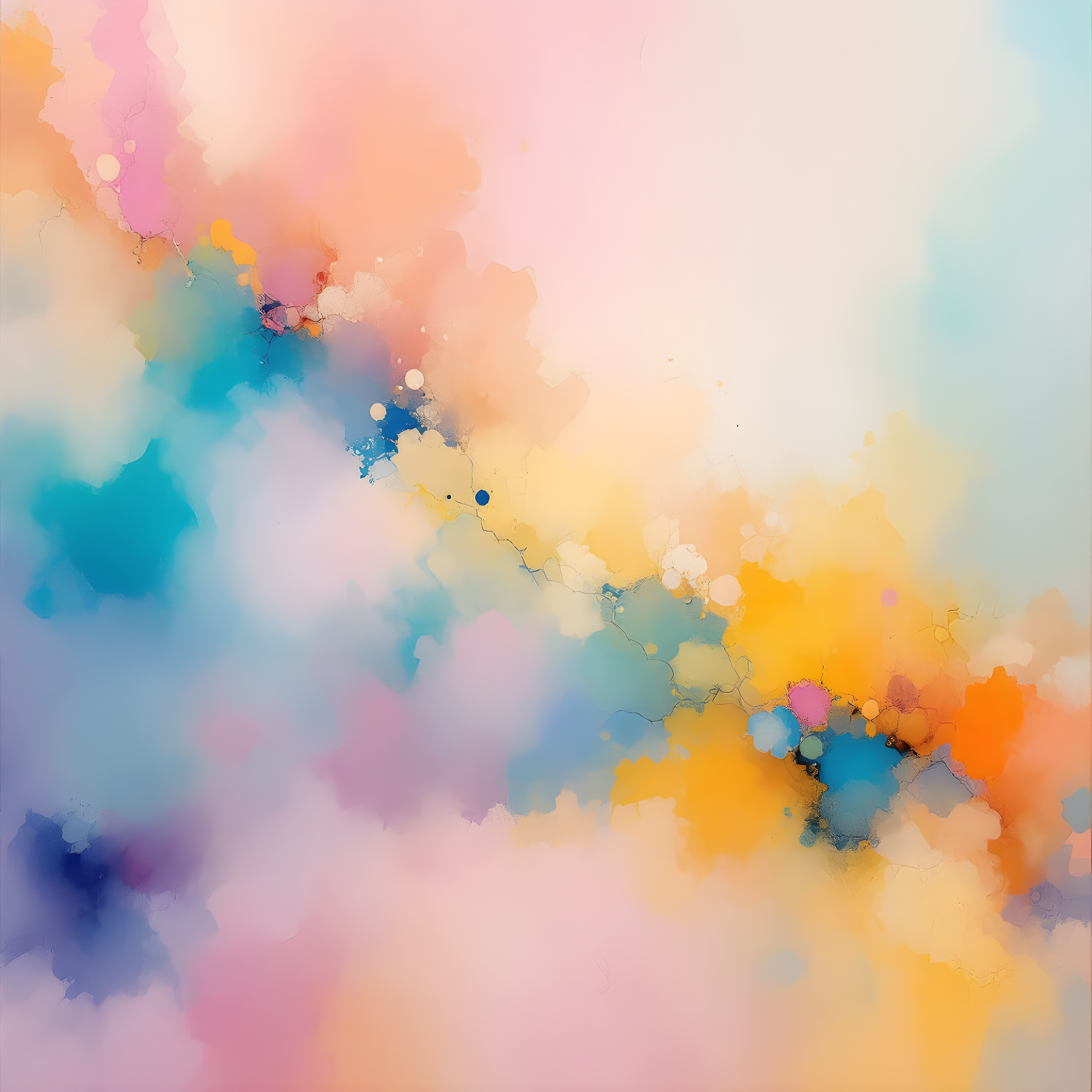 Over the Western Pacific near the Philippines, where warm tropical waters meet variable atmospheric pressures, the moderate humidity and gentle westerly winds create conditions ripe for Frankenthaler's signature color-field approach. The significant temperature anomaly of 17K above normal translates into luminous warm washes of salmon and golden ochre that pool and spread across the canvas, while the moderate pressure gradient of 33 Pa/cell creates subtle directional flows. The 56% humidity allows for semi-transparent layering where colors bleed into each other but retain some opacity, and the 5.6 m/s wind from 293 degrees guides the stain patterns in a northwest-to-southeast drift.