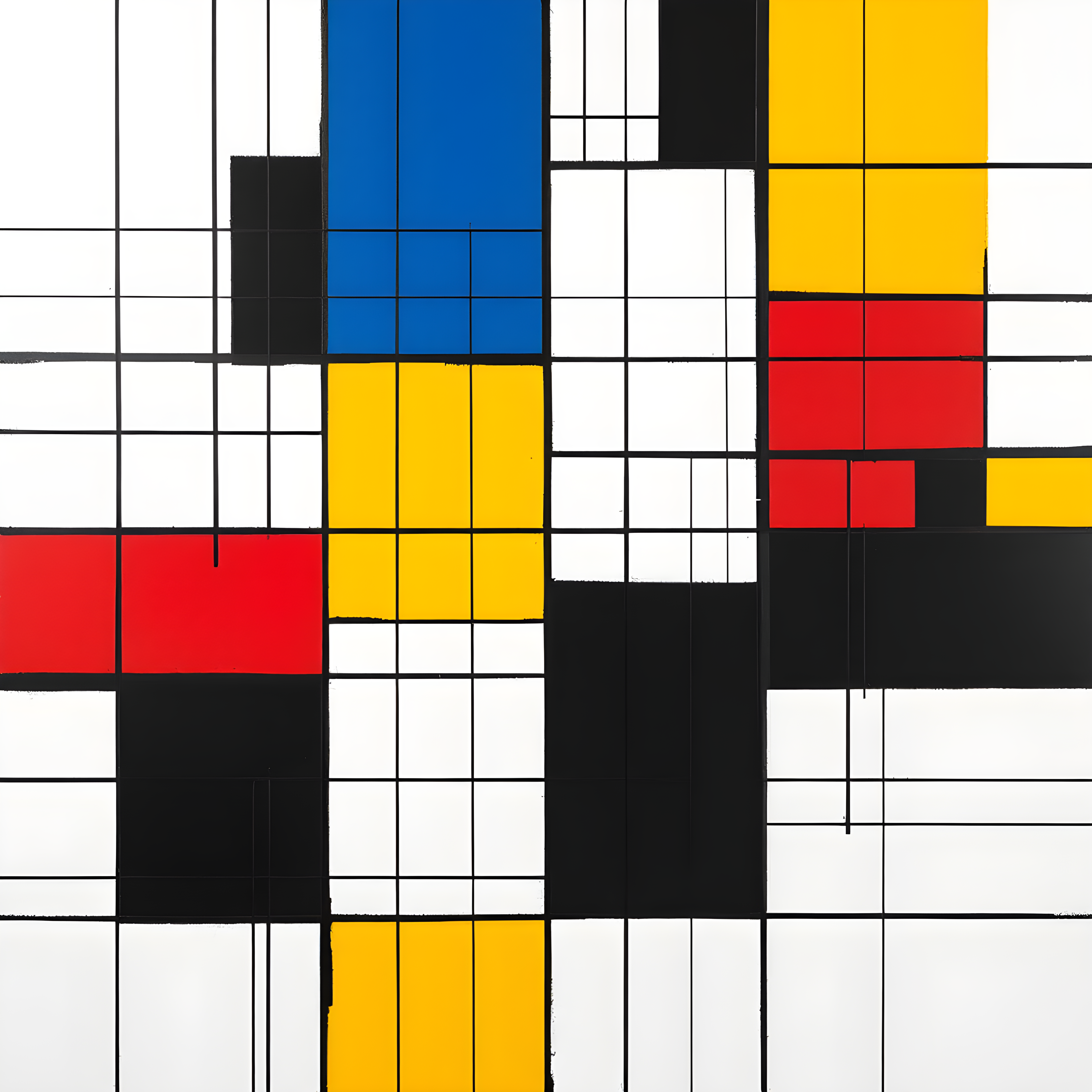 Over the Arctic Ocean northwest of Iceland at 70°N 20°W, frigid air masses collide with warmer currents creating dynamic atmospheric tension. The high pressure gradient of 43.35 Pa/cell demands a dense network of intersecting black lines creating numerous small rectangular cells, while the extreme cold with an 18.1K positive anomaly calls for blue to dominate the composition. The moderate wind speed of 12.5 m/s from 50 degrees creates asymmetric balance weighted toward the upper right, and the very high humidity of 95% translates to thick, bold black dividing lines throughout the grid system.